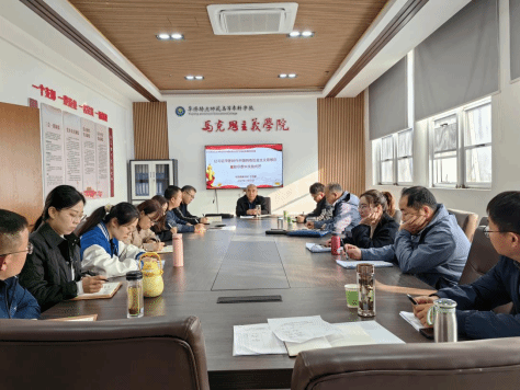为深入学习贯彻习近平新时代中国特色社会主义思想,11月22日,校党委副书记于华献走进马克思主义学院党支部调研并讲授专题党课。校组织人事处负责人周志远陪同调研,马克思主义学院全体党员出席活动。