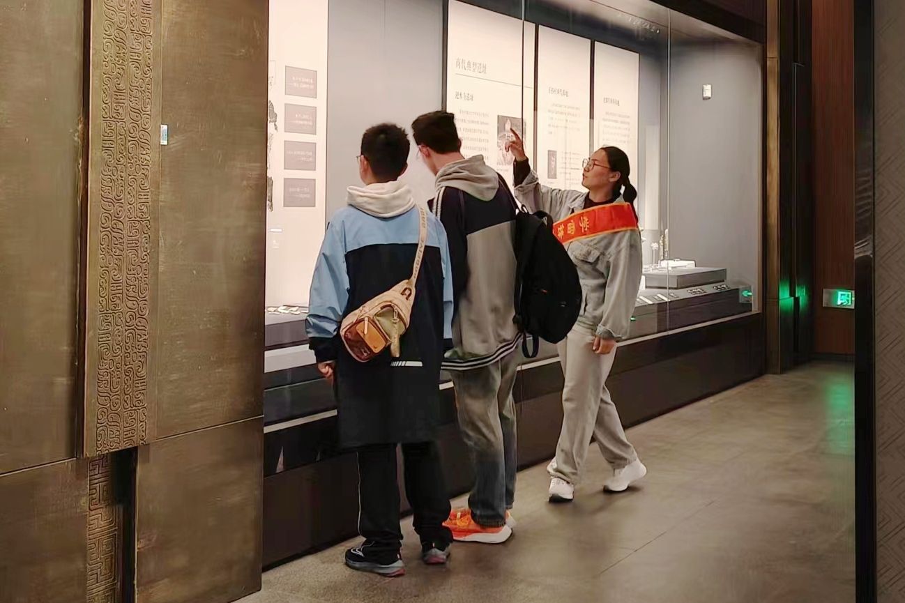 博物馆内,志愿者们到岗后分组行动,进行文明倡导、楼层指引,亲切地向参观者介绍展馆的各个展览区,分享展品的历史背景和文化价值,耐心地回答参观者提出的问题,帮助更多人深入了解阜阳博物馆的藏品。