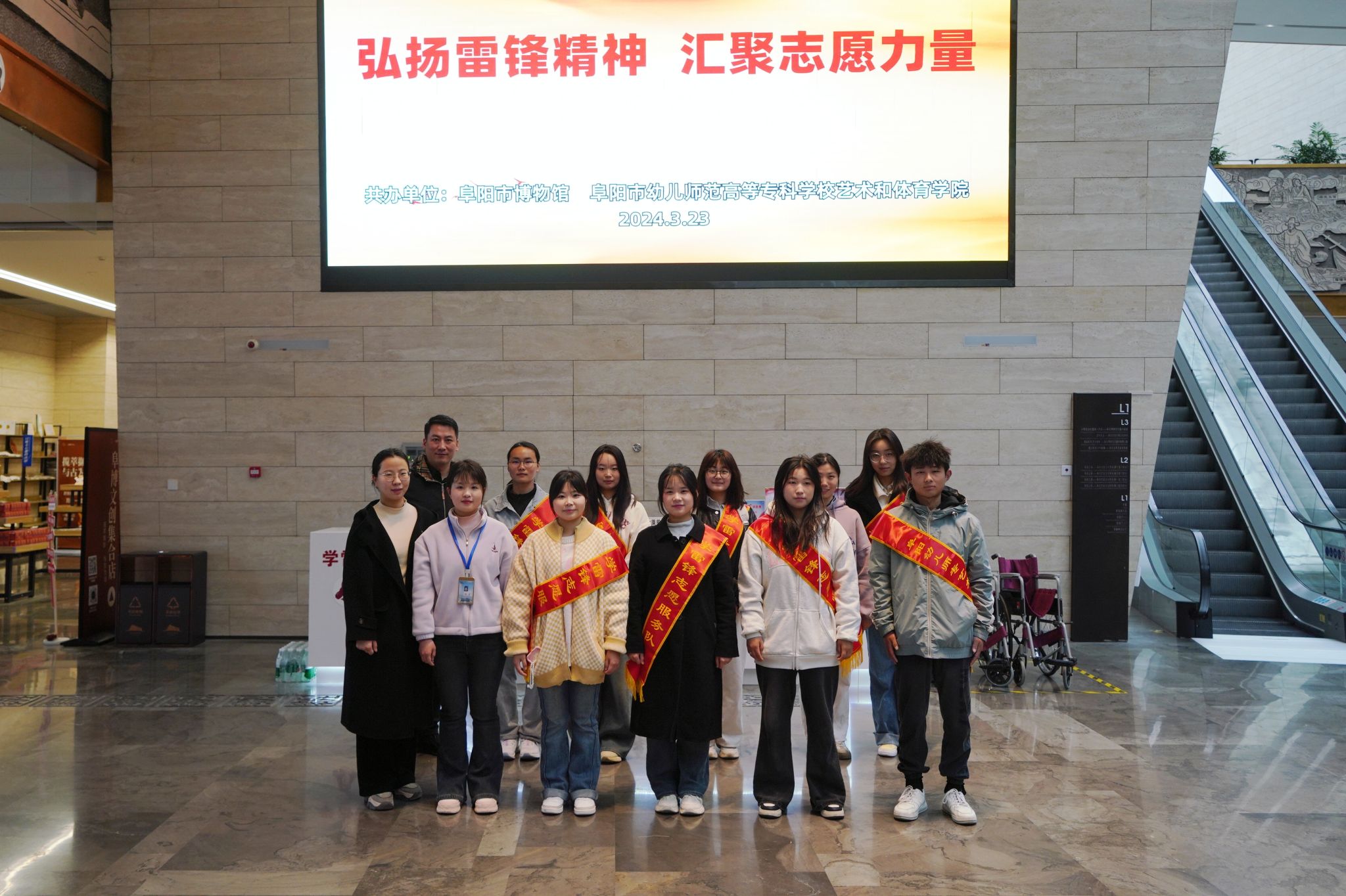 为贯彻落实习近平总书记对深入开展学雷锋活动作出的重要指示,书写新时代的雷锋精神,让雷锋精神薪火相传。3月23日上午,由阜阳市博物馆与艺术和体育学院联合开展“弘扬雷锋精神 汇聚志愿力量”践行社会主义核心价值观主题活动。艺术和体育学院共组织40名学生志愿者分组在阜阳市博物馆开展为期两周的志愿服务活动,活动当天艺术和体育学院团总支书记周振国、辅导员崔蓓带队参加。