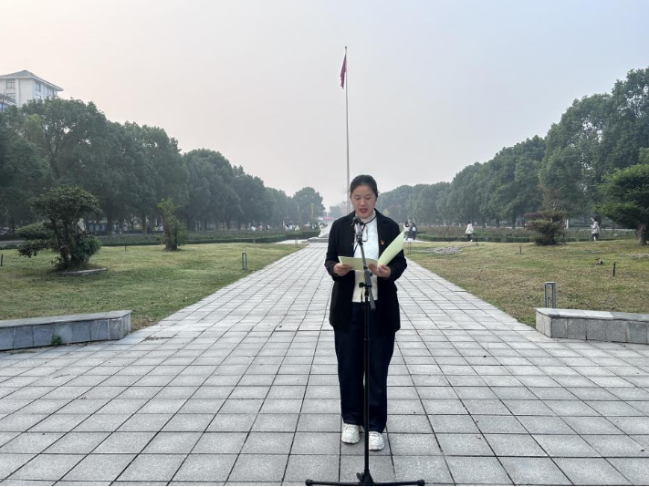 学生代表王新洁以《身心同发展,青春向未来》为主题作国旗下的演讲。她表示,作为新时代的新青年,要将身心健康的理念融入日常,让每一次呼吸、每一次运动、每一次思考都成为自我成长的契机。要珍惜时光,身心两健同发展,锻炼健康的体魄和阳光的心态,培养创新思维和实践能力。