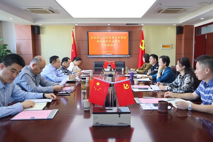 2023年10月18日至19日,阜阳市人大常委会副主任、阜阳幼专党委书记金杰带队赴滁州职业技术学院、滁州城市职业学院、安徽职业技术学院,党委委员、副校长许宗志,党委委员、办公室(宣传部)主任(部长)徐常恺参与调研。