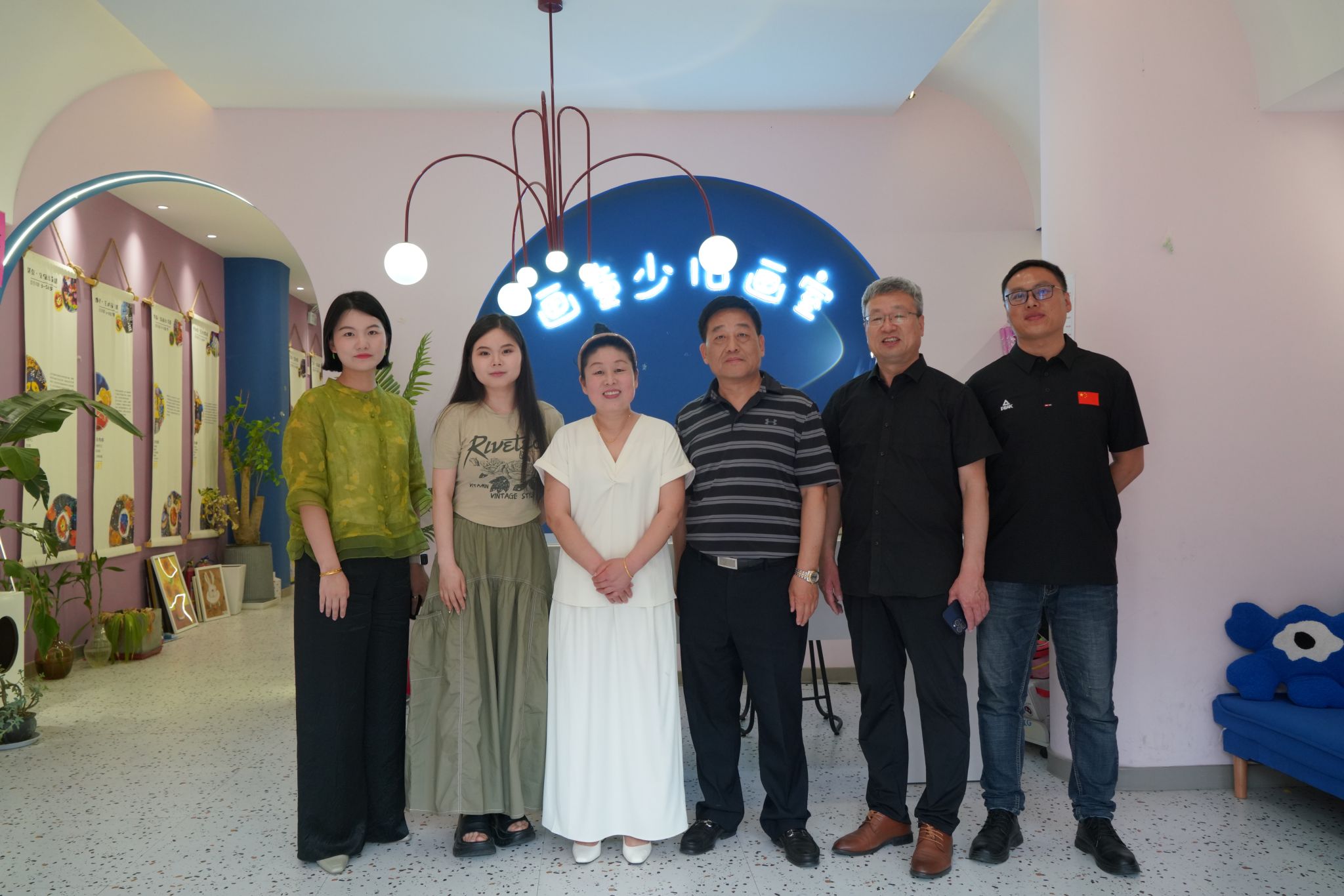 访企后,看望了2019届优秀毕业生慕宇,了解了近期发展情况,参观了家族企业画童少儿画室,根据介绍,慕宇自毕业后考上教师编制,帮助家人提升画室办学规模、制定企业目标、规范企业管理、创办品牌,成为当地知名少儿培训企业。孙驰对校友,敢闯敢干的精神给予肯定,并对画室的环境创设和办学规模给出高度评价,并热情邀请校友返校交流,为学弟学妹传经送宝,同时也希望慕宇能够坚守教育初心,做好本职工作的同时,多为社会做贡献,给母校争光。(图文:周振国,终审:范云峰)