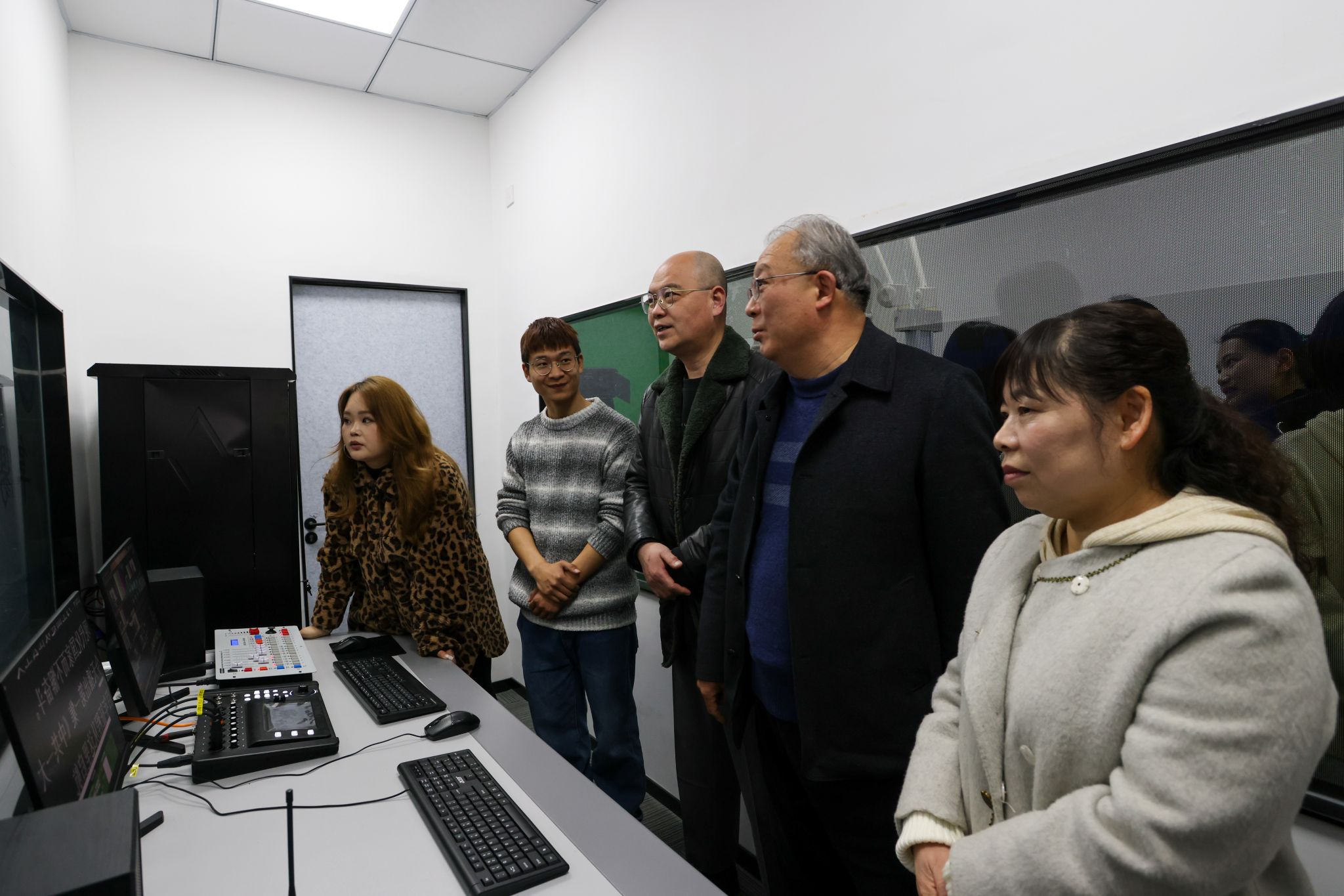 企业代表一行先后参观了学校的直播室和演播室,现场感受了学生们精彩纷呈的实战直播演练,对学生们的专业素养和表现能力表示赞赏。