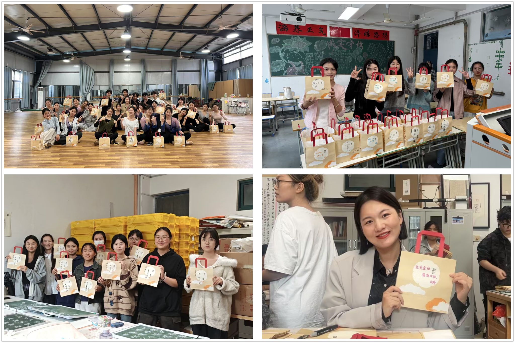 活动现场,学院为学生精心定制了中秋礼品,并准备了贺卡。老师们认真在礼品袋上写下 “月圆人安”“学业进步”“前程似锦” 等真挚祝福,将学校、学院和老师们的关心与期望融入字里行间。党员教师佩戴党徽,以实际行动践行初心使命。