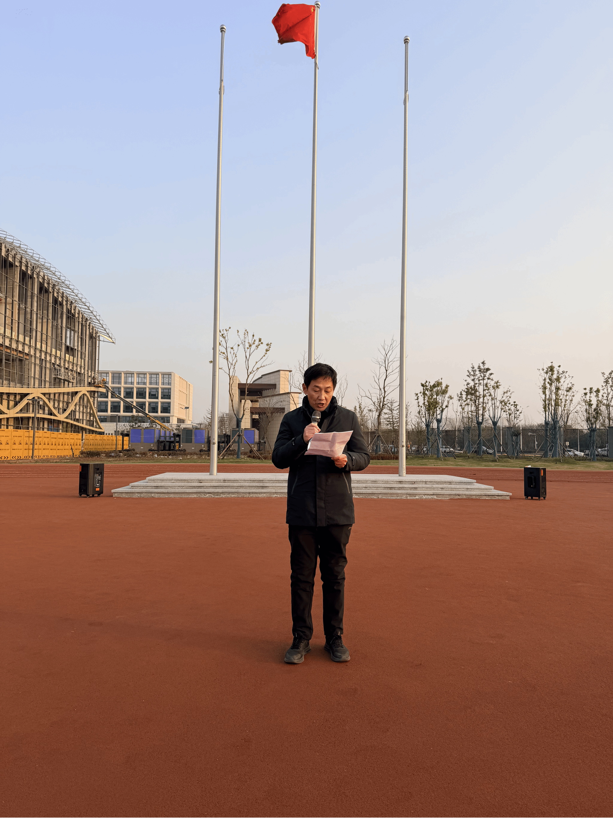 晨光熹微,国旗飘扬。仪式在庄严的国歌声中拉开帷幕,全体师生肃立行礼,注视着五星红旗冉冉升起,表达对祖国的崇高敬意。