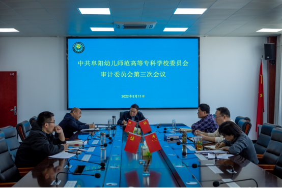 2022年3月11日下午,中共阜阳幼儿师范高等专科学校委员会审计委员会第三次会议在文津楼602会议室召开。会议由阜阳市人大常委会副主任、学校党委书记、审计委员会主任金杰主持。