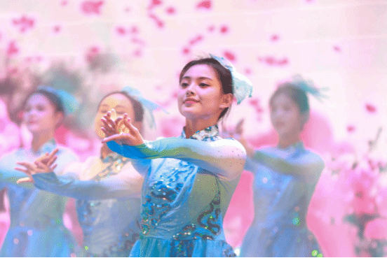 整场演出以“牢记嘱托再出发、踔厉奋发建新功”为主题,包含舞蹈、歌曲、器乐演奏、新编戏曲演唱等多种形式。伴随着激情热烈的音乐旋律,国标舞《激情桑巴》为演出拉开了帷幕;大气磅礴的歌曲《壮丽未来》表达出对祖国的无限祝福;舞剧《五星出东方》(片段)以中国传统文化为灵感,再现了汉代中原与西域文化交融共生的场景;高山流水觅知音,琴箫合奏《流水》悠扬婉转,传统乐器再次迸发无限魅力;黄梅情景短剧《小康路上》聚焦脱贫攻坚,将传统黄梅戏与时代相结合,与时俱进,展现出共同富裕奔小康的美好愿景;群舞《花鼓敲天下》欢快喜庆,将花鼓艺术传递给现场观众。此外,还有经典歌曲和舞蹈等表演,现场表演精彩绝伦,赢得观众阵阵掌声。