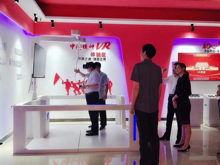 汪芳启进行了虚拟仿真思政课教学体验,直观感受了虚拟仿真思政课教学虚实融合的效果。他认为虚拟仿真思政课给人一种身临其境的感觉,提高了学生学习的兴趣,提升了思政课教学效果。
