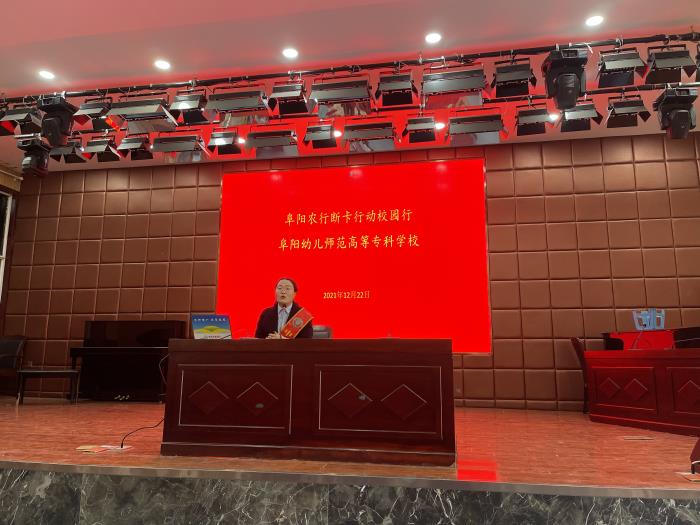 手机卡能卖钱,银行卡还能成为作案工具,你知道该怎样预防吗?12月22日下午,应学校邀请,中国农业银行阜阳分行走进阜阳幼专校园,开展“防范网络电信诈骗,断卡宣传进校园”主题宣传活动,向在校师生宣传“断卡”行动、防范电信诈骗以及银行卡安全使用等金融知识。