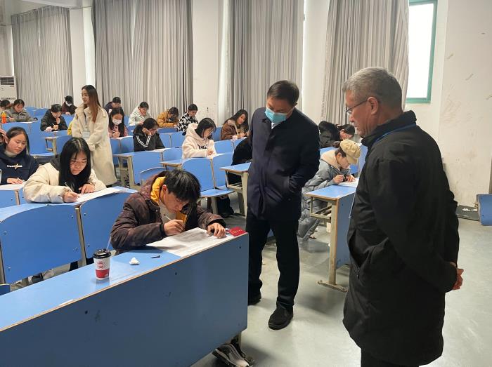 金杰认真巡查了考场设置、监考人员配备、考场纪律等情况。对学院期末考试组织工作表示肯定。检查过程中,金杰强调,要认真做好期末考试的组织、管理工作,加大考风考纪的宣传力度,加强学生的诚信教育,营造良好的学习和考试氛围,各教研室要提前做好计划,严把出卷质量、做好集体阅卷工作,提高双基建设质量,以考风促进教风、学风改善。(图、钮菲菲,文、周振国,审核、张凌艳)