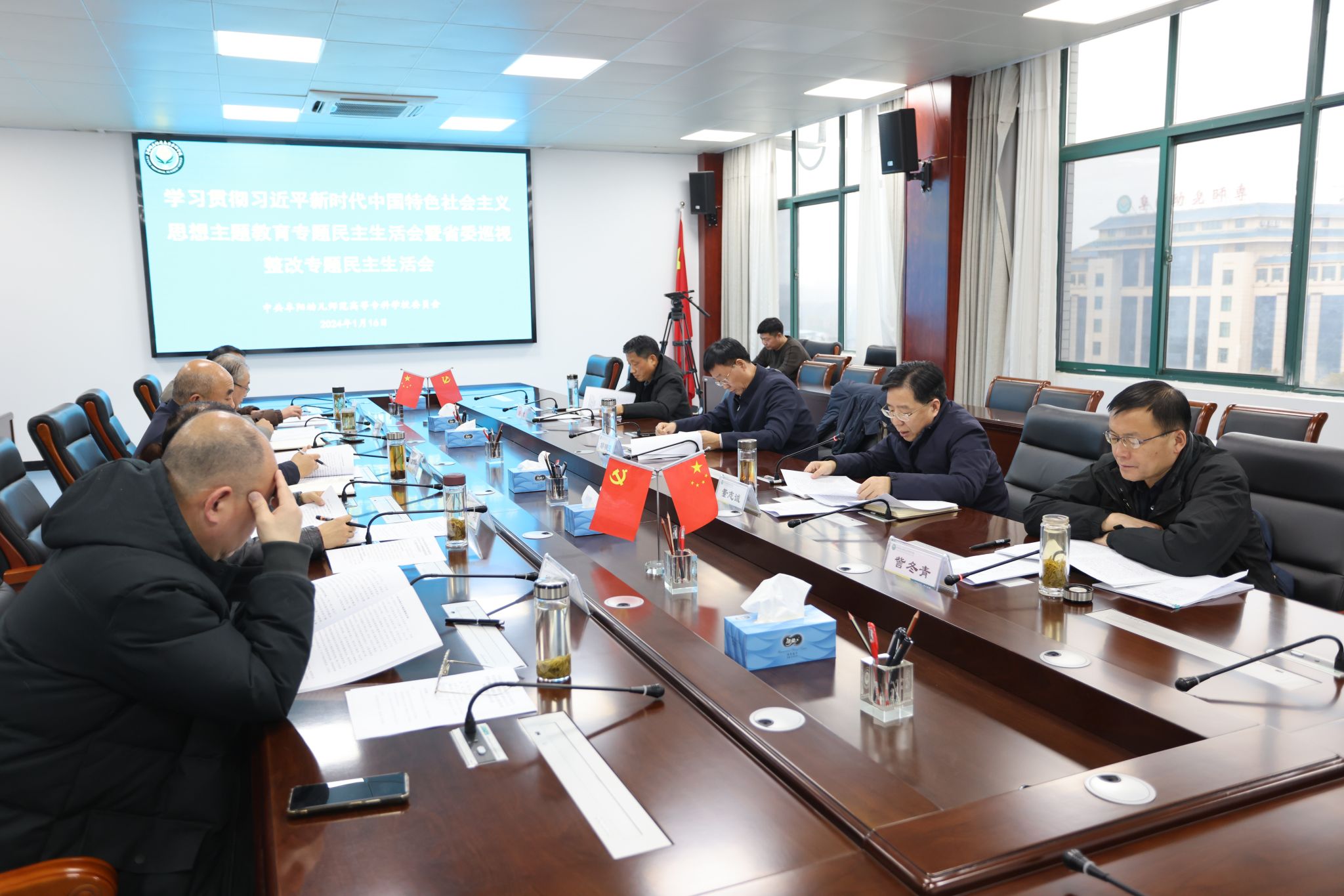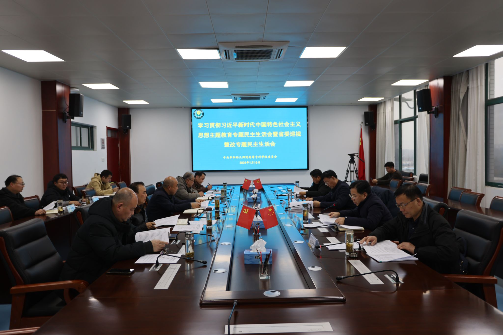 1月16日,学校党委召开学习贯彻习近平新时代中国特色社会主义思想主题教育专题民主生活会暨省委巡视整改专题民主生活会。市人大常委会主任胡明莹,市委主题教育联络五组组长、市委党校副校长訾冬青到会指导。校党委书记董志诚主持会议,校党委领导班子成员参加会议。