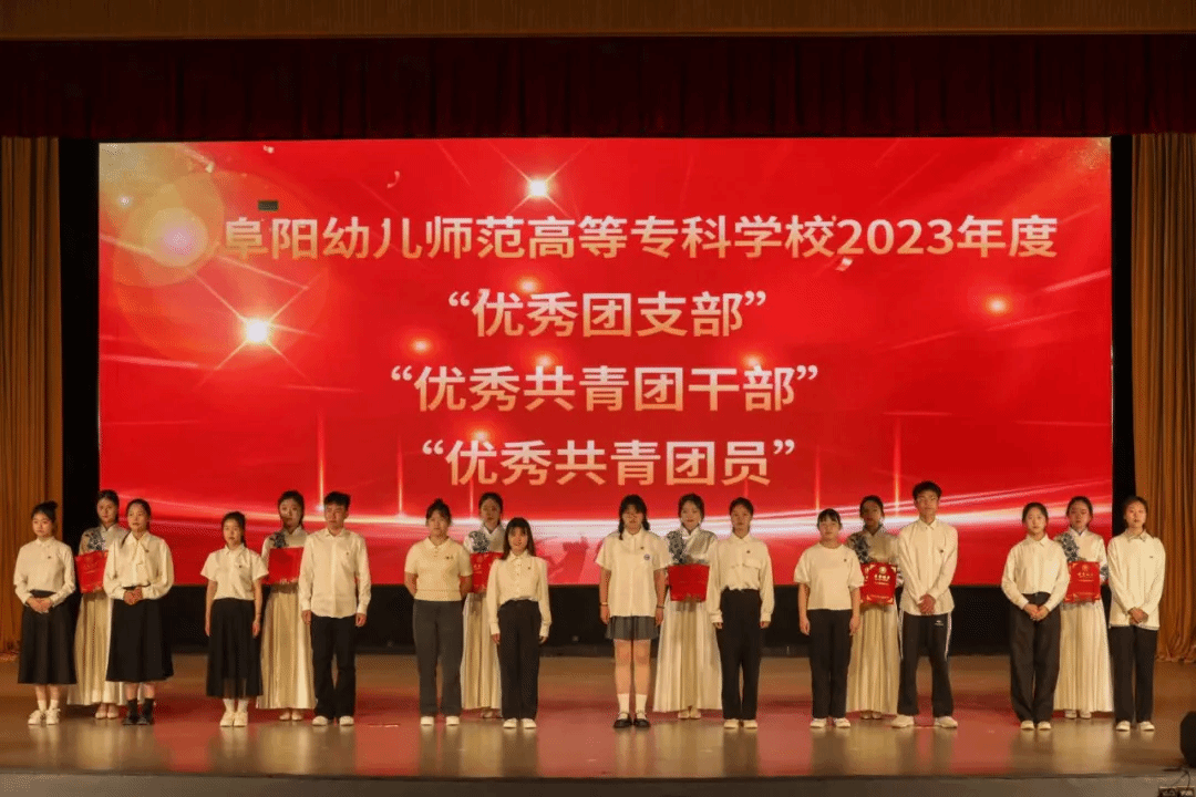 颁奖环节中,2023-2024学年“安徽省大学生自强之星”推荐人选、学校2023年度“十佳大学生”“优秀共青团员”“优秀共青团干部”“优秀团支部”代表分别上台接受表彰。
