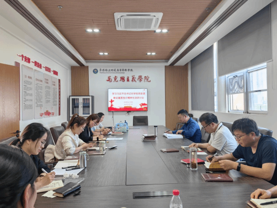 近日,新时代学校思政课建设推进会在京召开。习近平总书记对学校思政课建设作出重要指示,高度肯定了新时代学校思想政治理论课建设取得的成绩,对广大思想政治理论课教师提出殷切期望。习近平总书记的重要指示在学校师生中引发热烈反响,校党委第一时间召开校党委会,学习贯彻习近平总书记重要指示精神,深化认识,落实举措。马克思主义学院第一时间组织思政课教师学习研讨,大家纷纷表示,要主动扛起教育使命和担当,紧扣时代脉搏,紧跟党的创新理论,以更加自信的状态理直气壮讲好每一节思政课,努力培养更多让党放心、爱国奉献、担当民族复兴重任的时代新人。