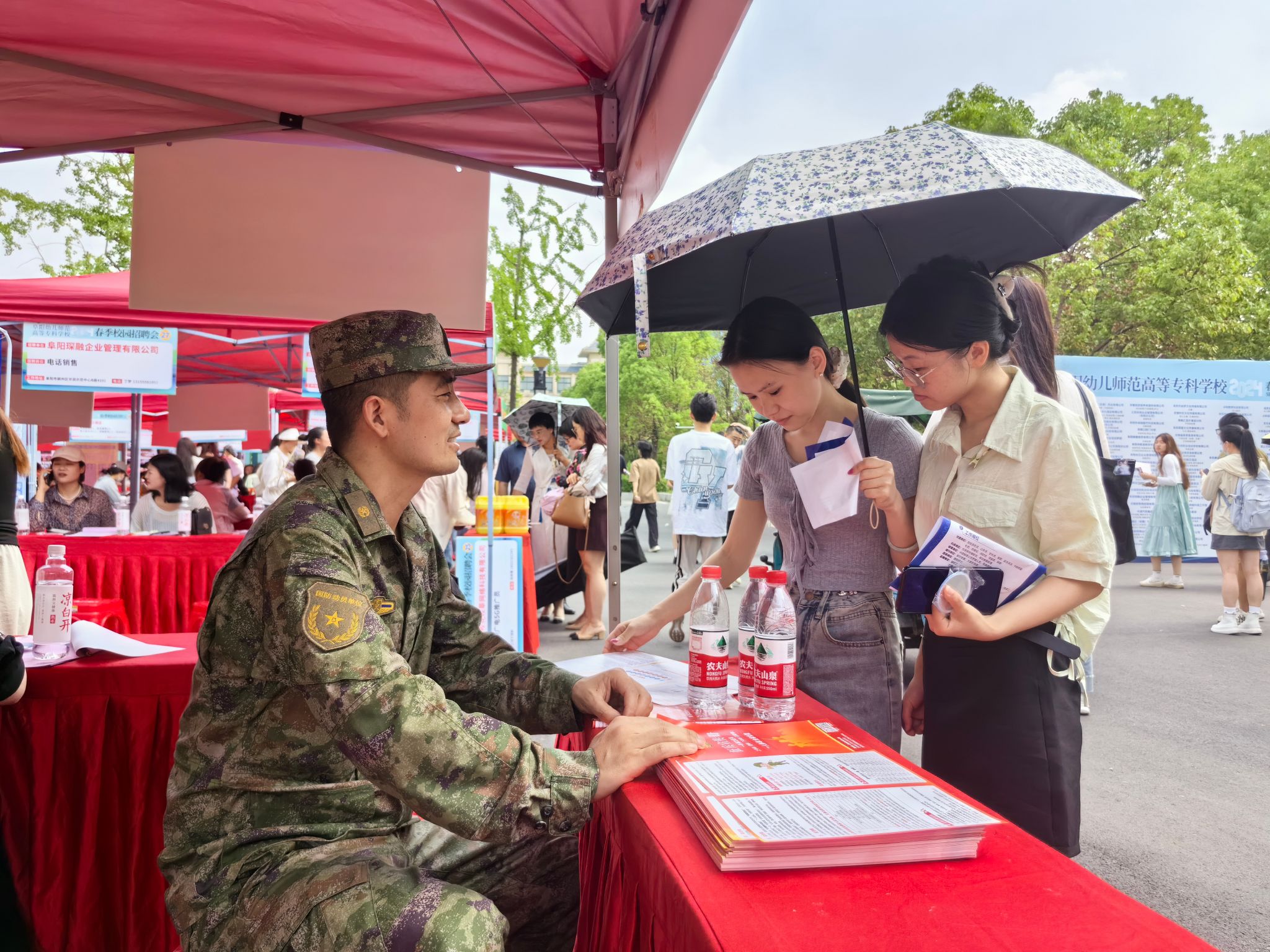 为推进学校征兵工作,激励更多优秀大学生参军报国,5月22日,利用校园招聘会时机,邀请颍州区人武部相关领导到校开展线下征兵动员宣传活动,党委书记董志诚,党委副书记、校长汤志现场指导。