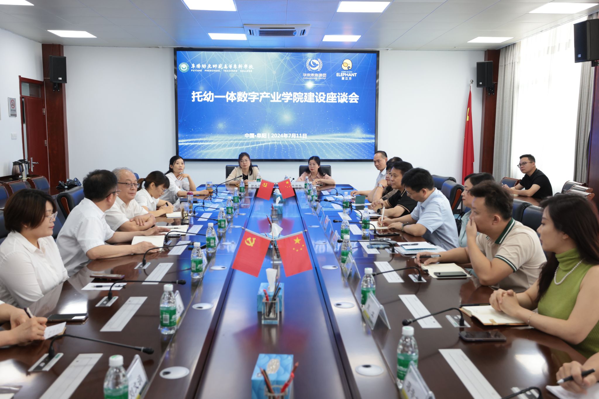 为深化产学研合作机制,构建政校企协同育人实践平台,7月11日,我校与华宋未来教育科技集团、武汉爱立方儿童教育传媒股份有限公司共同为托幼一体数字产业学院揭牌。校党委书记董志诚出席活动并致辞,校党委副书记、校长汤志主持活动,市委教育工委书记、市教育局局长齐明砾,武汉爱立方儿童教育传媒股份有限公司董事长吴高余、华宋未来教育科技集团董事长郭承宏,校领导于华献、陈绪龙、连璞、许宗志、刘海涛、徐常恺出席活动,各部门、学院负责人及学前教育学院教师代表参加活动。