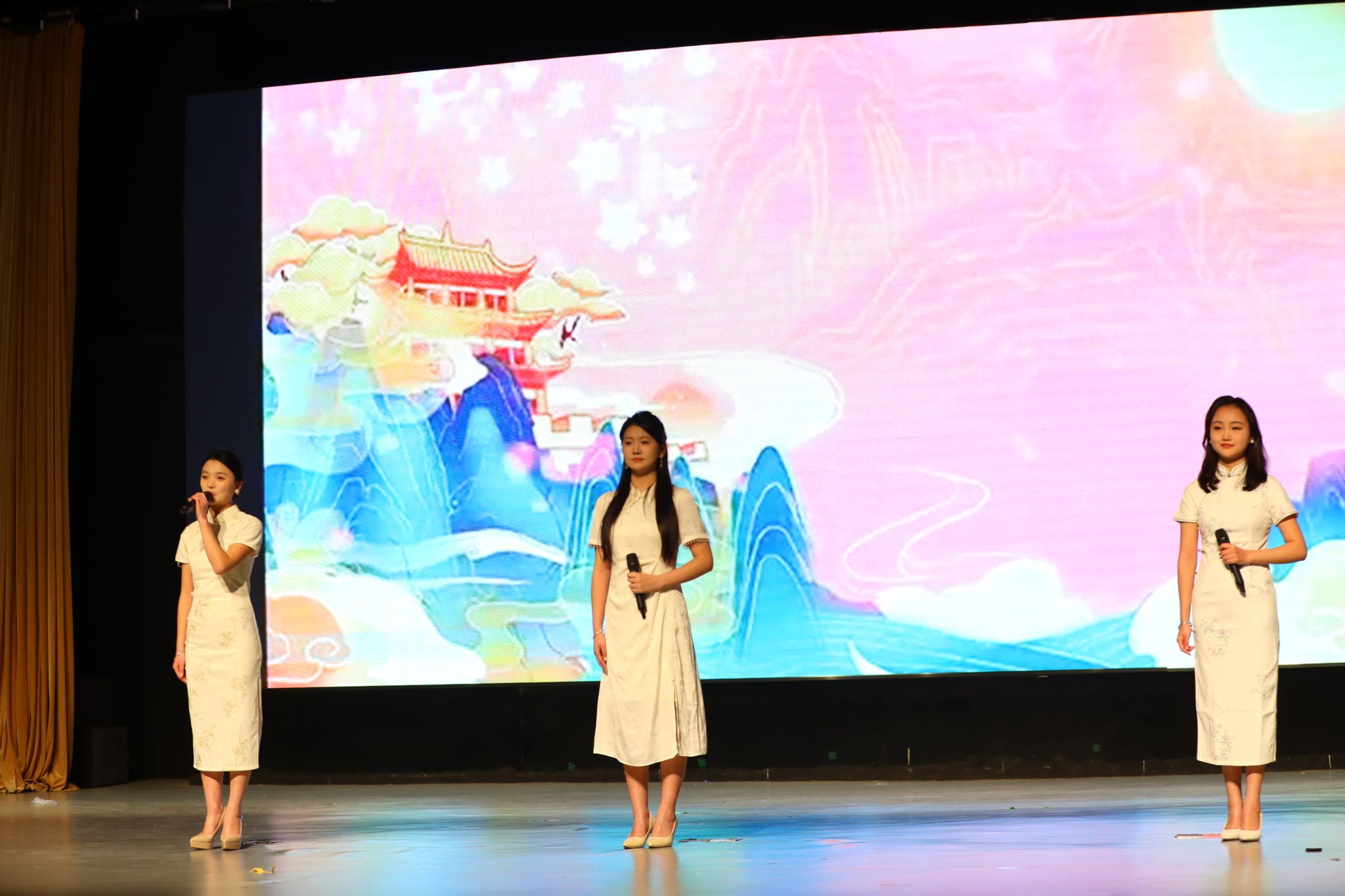 器乐演奏《流水》仿若一阵清风,为观众们带来别样的清幽古韵。清脆悦耳的音符,恰似清泉在石上缓缓流淌,舞台背景上,水墨山水画卷徐徐展开,与音乐相得益彰。舞蹈节目《清凤徐来》宛如微风拂面,舞者们身着淡雅服饰,身姿轻盈典雅,举手投足间尽显古韵遗风;《风声》则截然不同,舞者们以刚劲有力的动作,传递出坚韧不拔的精神力量;而《热情的沙漠》瞬间将气氛点燃至沸点,舞者们身着鲜艳火辣的服装,热情奔放地舞姿尽显青春活力。