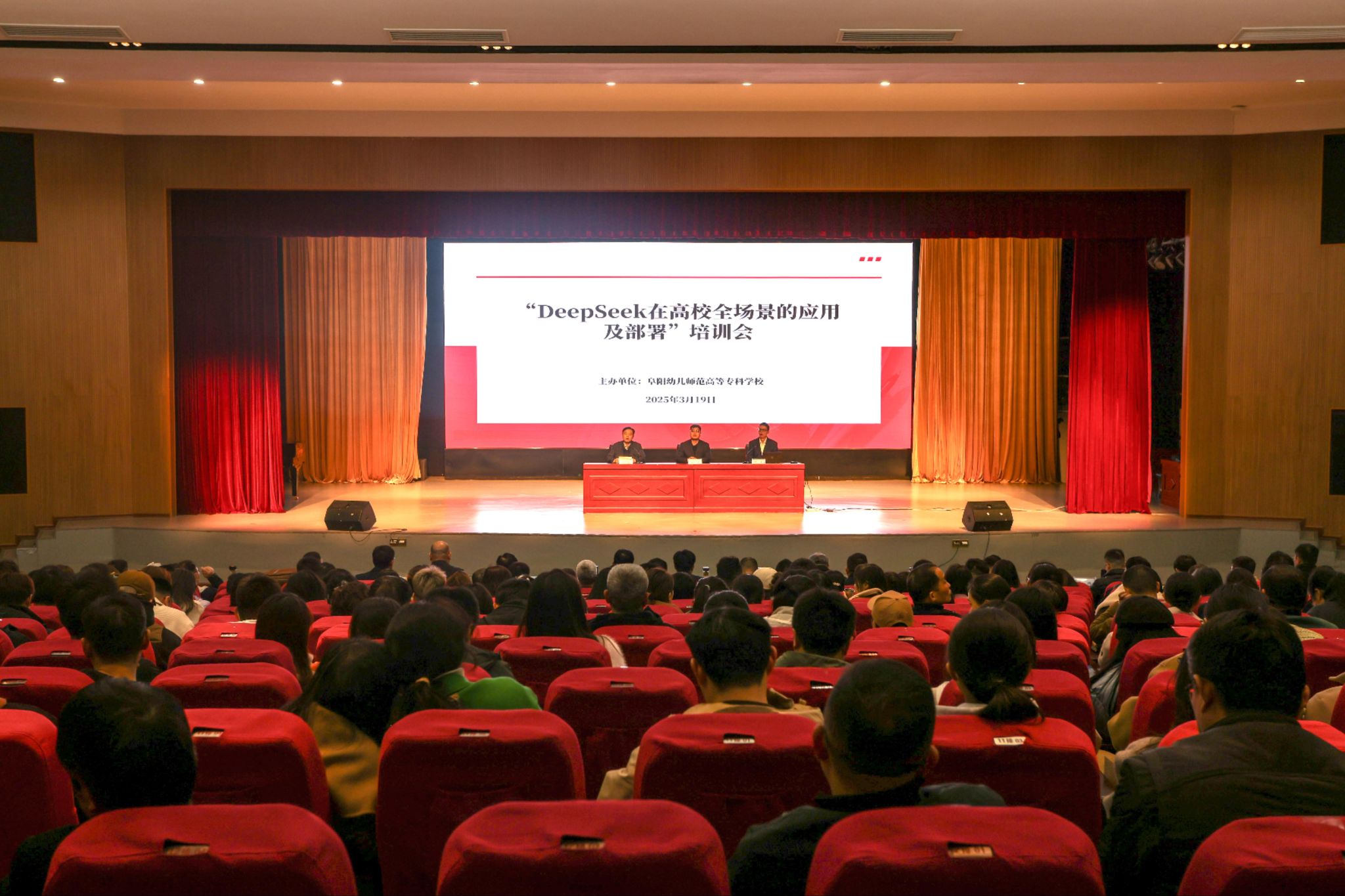 为加快推进教育数字化转型,提升学校智慧化管理与服务水平,3月19日下午,阜阳幼儿师范高等专科学校在德馨楼演播大厅成功举办“DeepSeek在高校全场景的应用及部署”专题培训会。校领导董志诚、汤志、于华献、陈绪龙、沈辉、徐常恺、梁晨及全体教职工参加培训,共同探索人工智能技术赋能教育高质量发展的创新路径。会议由党委委员、副校长刘明主持。