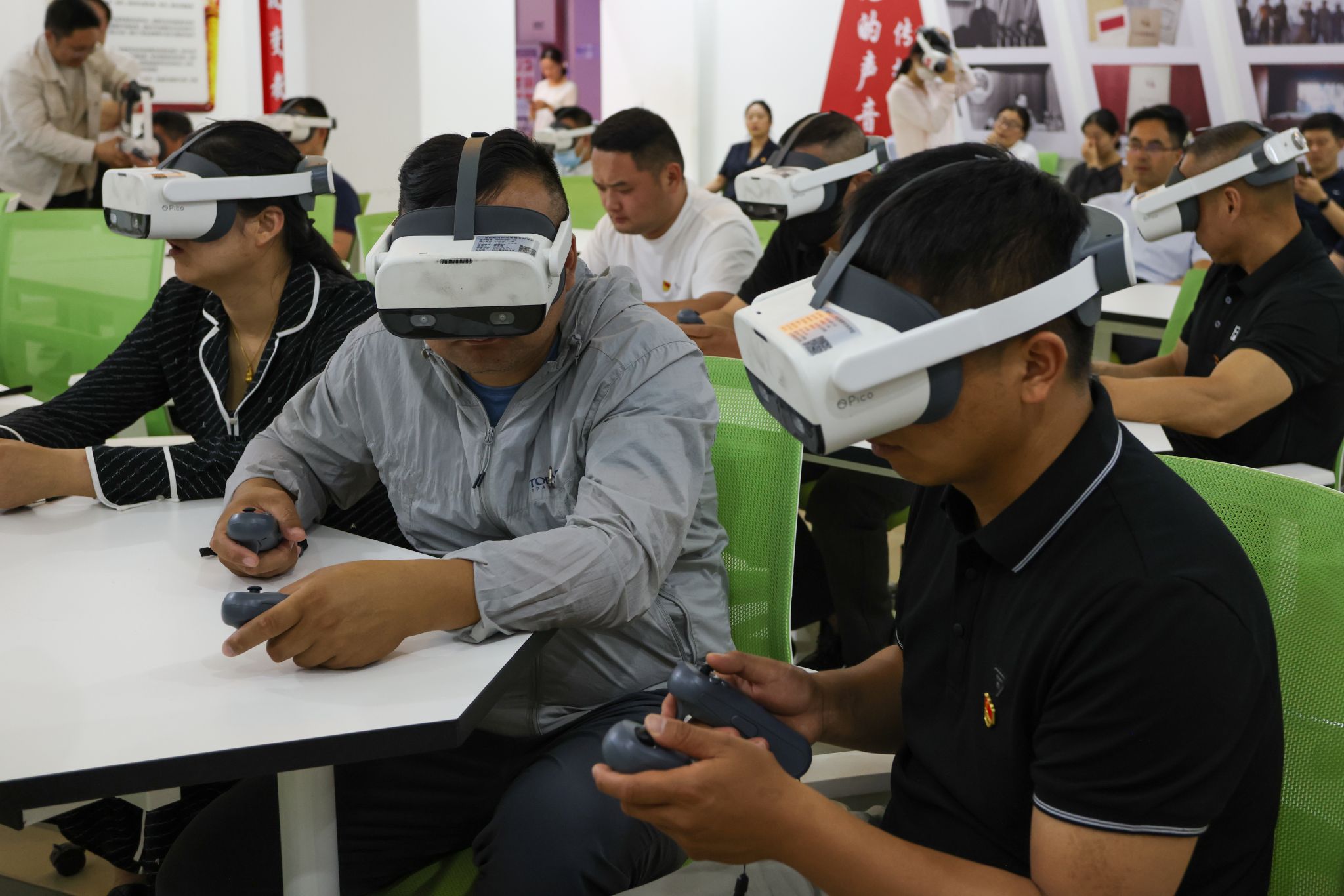 在中心实训室中,大家化身 “历史参与者”,通过互动操作,深入了解革命历史知识,亲身体验革命先辈们在枪林弹雨中的艰辛斗争,在沉浸式学习中深刻领悟红色精神的内涵。