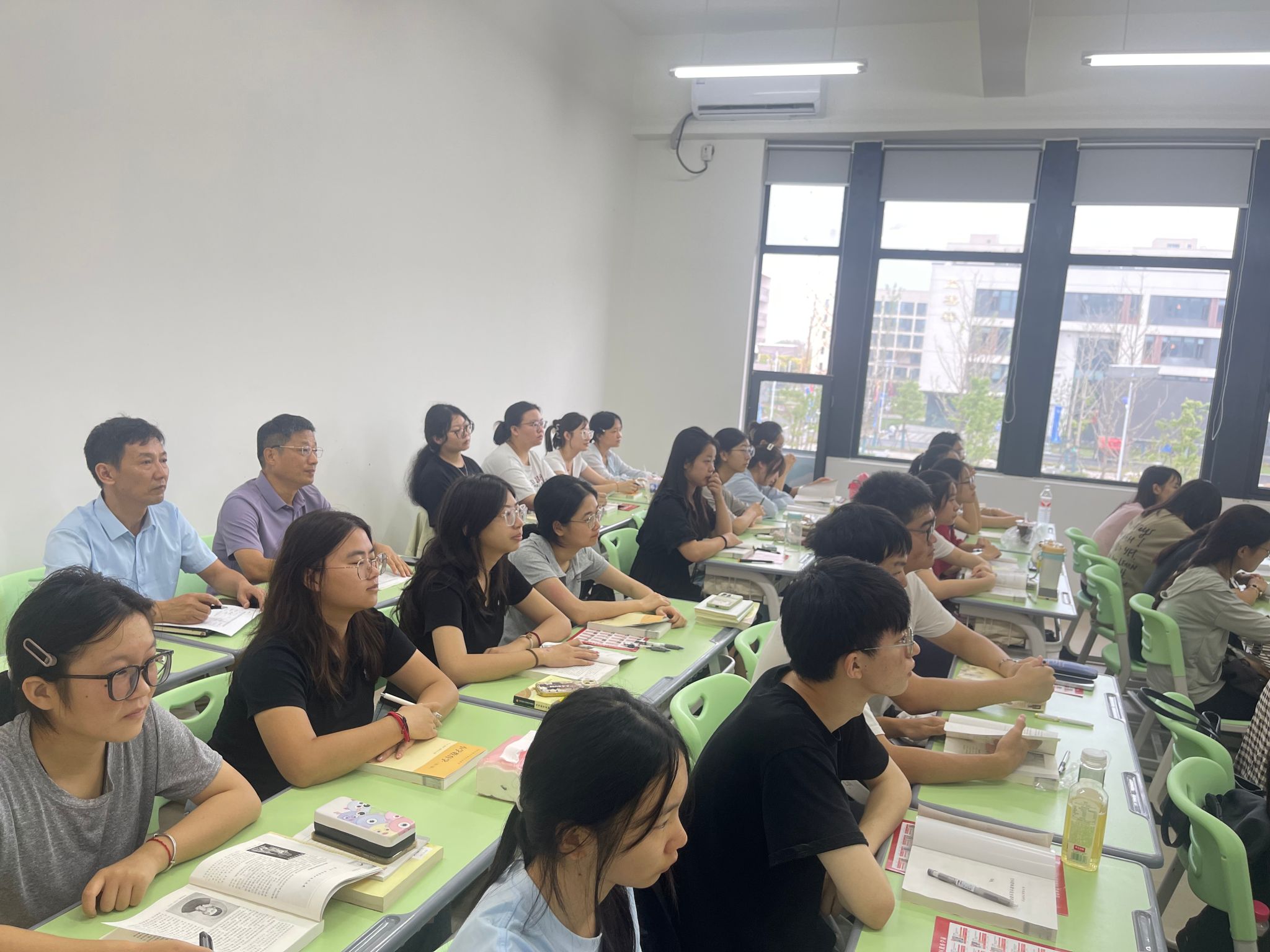上午9时,汤志一行来到行知楼202教室,随机听取了刘雪梅老师讲授的《小学教育学》课程。课堂上,刘雪梅老师围绕东西方教育学发展脉络,通过案例分析、互动问答等方式引导学生深入思考,课堂氛围活跃,教学成效显著。汤志边听边记,细致观察教师授课方式、学生参与状态及教学设施运行情况,并在教材教案中标注重点内容。