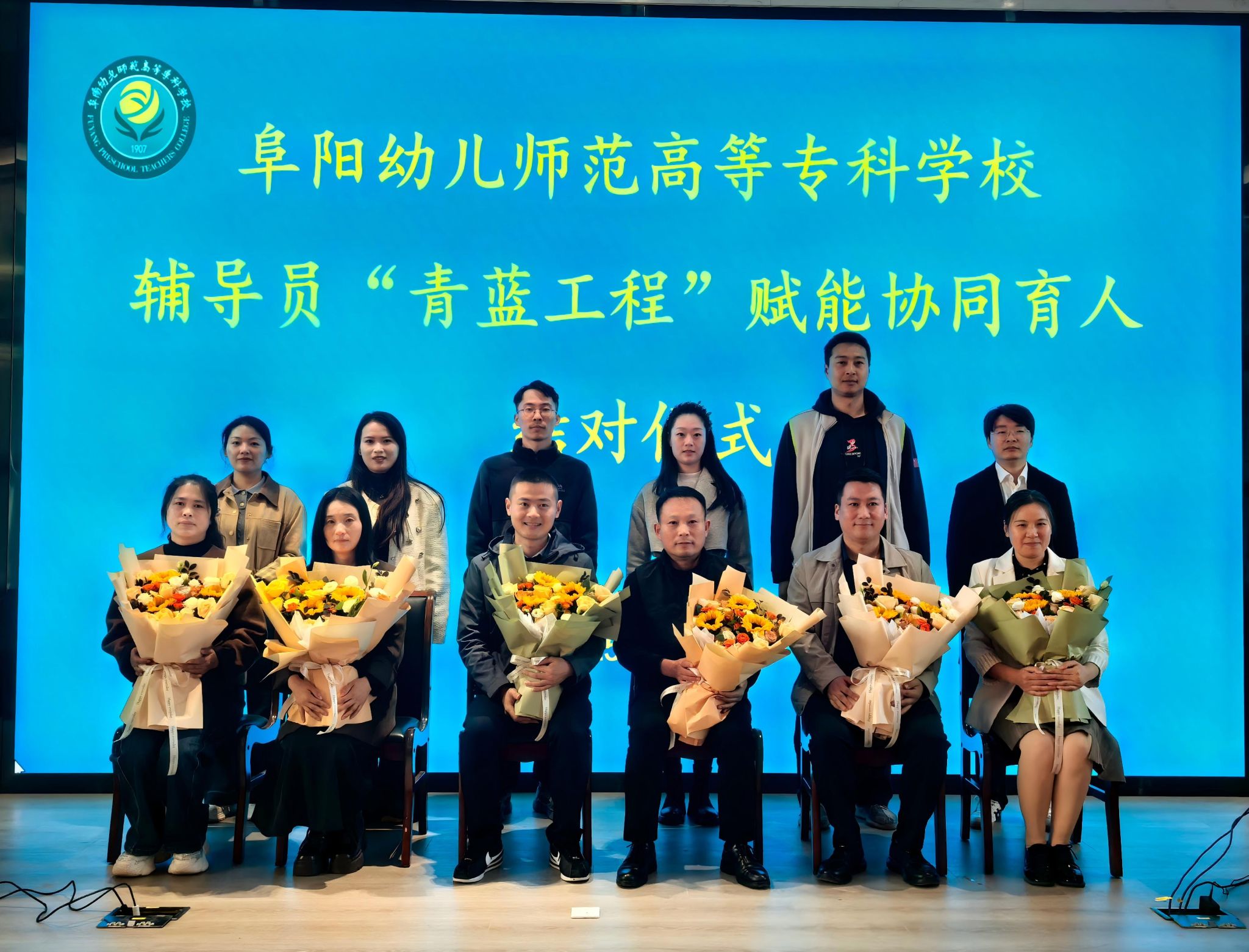 仪式上,2025级新聘任辅导员以学员身份向导师们行拜师礼,并献花表达拜师之诚、求学之志。陈绪龙向各位导师颁发聘书。