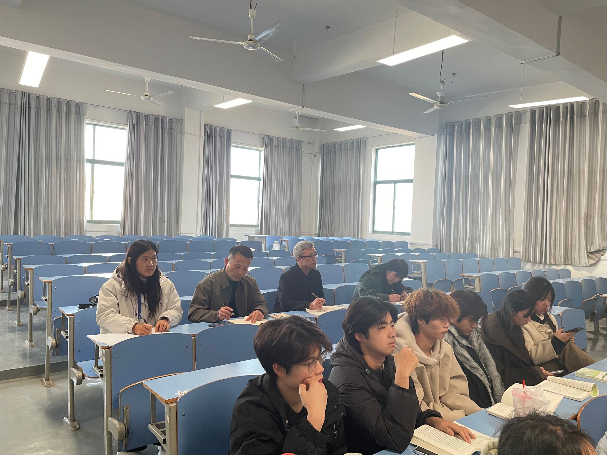 课堂之上,马克思主义学院王丽茹老师紧扣课程核心要义,立足艺术和体育专业特色量身定制教学内容,授课脉络清晰、环环相扣,课堂氛围热烈。徐哈军全程专注聆听,细致记录教学各环节要点,密切关注师生互动实效,为课后精准指导教学提升留存详实依据。