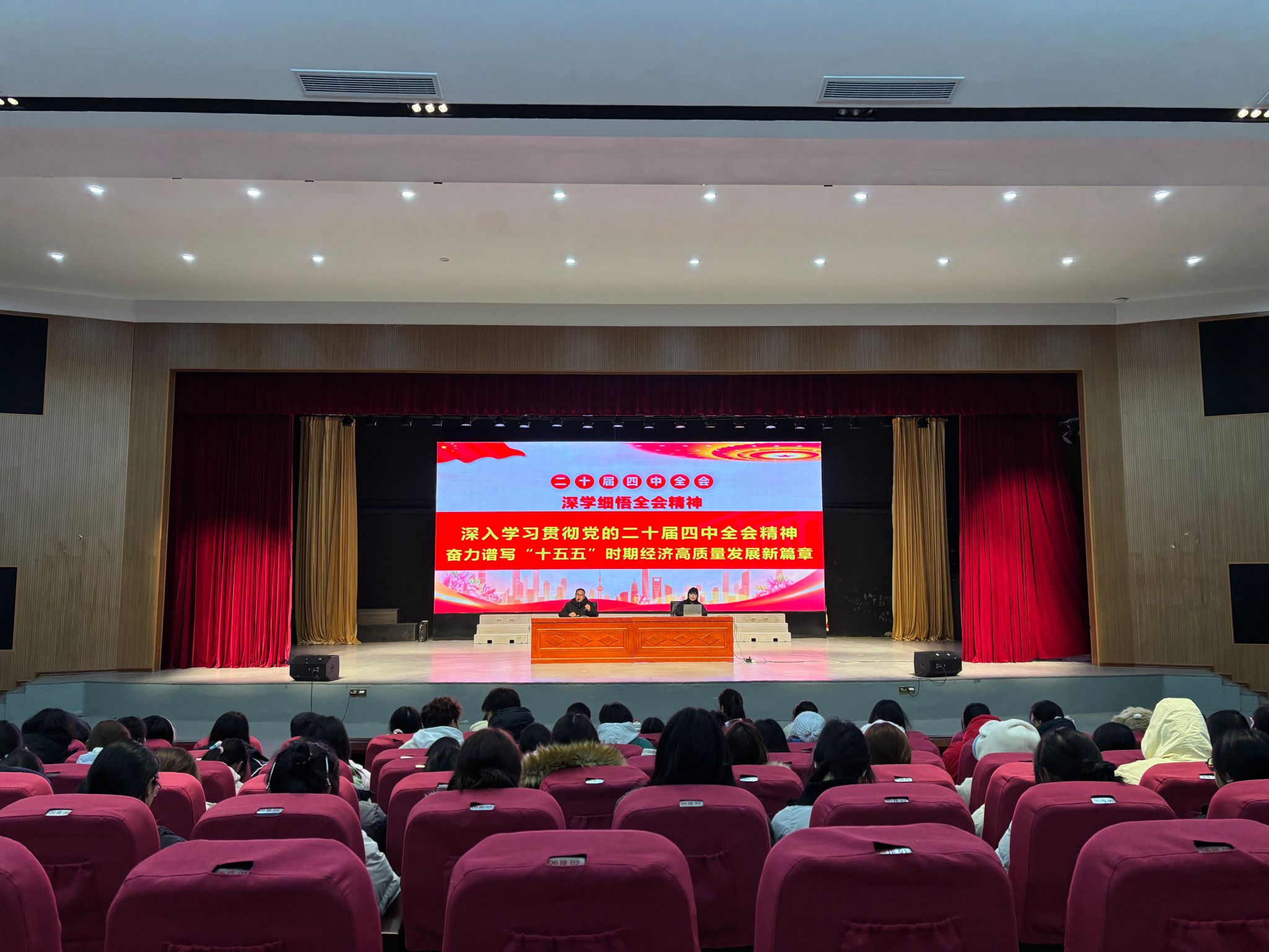 徐哈军从二十届四中全会内涵、十四五做了什么、十五五要做什么三个方面深入浅出的向师生娓娓道来,用一组组数据、一个个典型案例,展示了十四五国家经济、科技、民生等取得的骄人成绩。