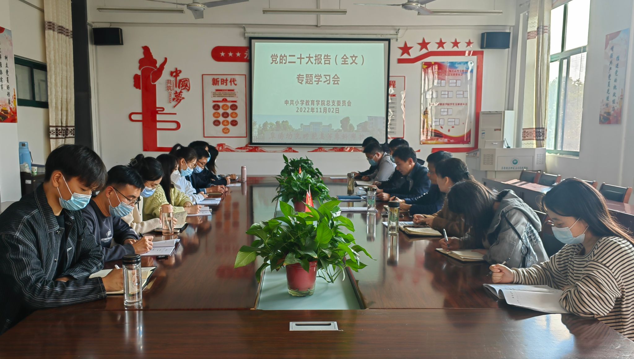 11月3日下午,我院党总支在文津楼201会议室开展党的二十大报告(全文)专题学习会。学习会由我院党总支负责人朱启俊领学,院长郭玉敏主持,校党委副书记、校长汤志作总结发言,学院全体在校党员参会。