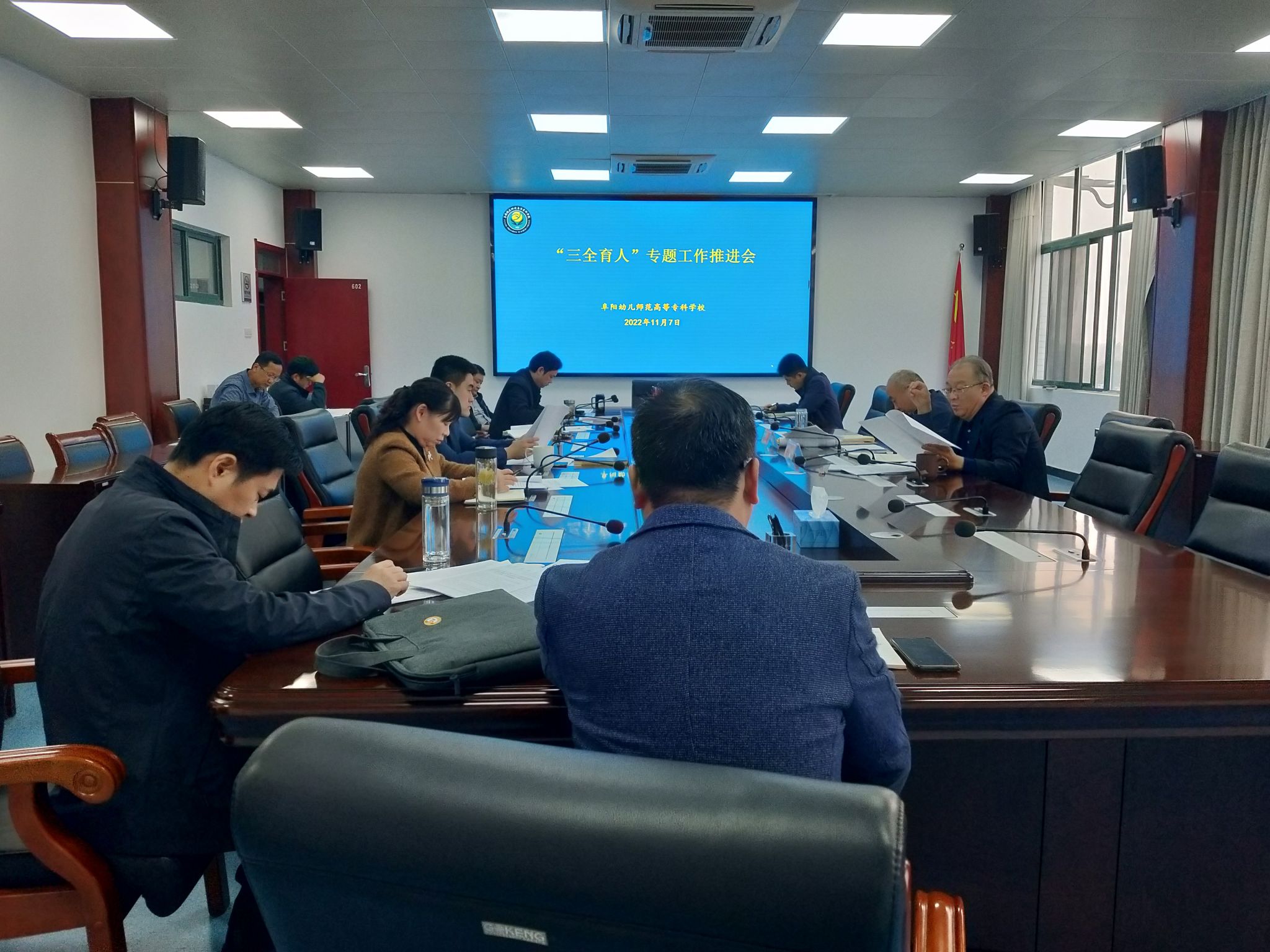 11月7日下午,我校三全育人专题工作推进会议在文津楼602召开,校党委副书记于华献,校党委委员、副校长陈绪龙出席,三全育人工作牵头部门的办公室(宣传部)、组织人事处、总务处、教务处、学生处、图文信息中心负责人及小学教育学院、马克思主义学院党政负责人参加会议,会议由刘志伟主持。