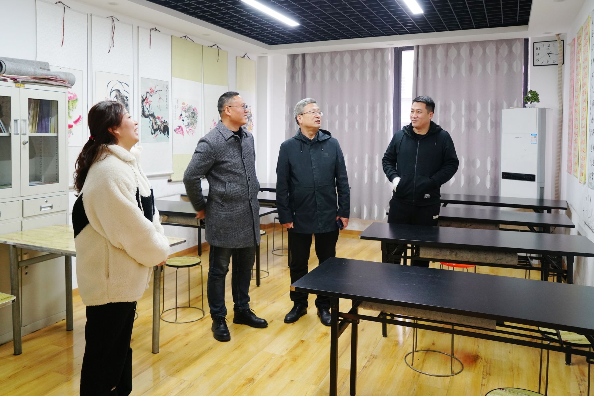 走访的企业中还有我校优秀毕业生代表,李宁画室创始人、05级美术大专班学生李宁,李宁画室自08年创办以来,一直秉承教育初心,坚守党员使命,不仅个人坚持学习,不断提升,也为社会上培养了许多美育教育人才,为美学教培行业树立新风貌,践行了立德树人根本任务,发扬了我校”明德树人 行为师表“校训,为毕业生创新创业树立了模范带头作用。