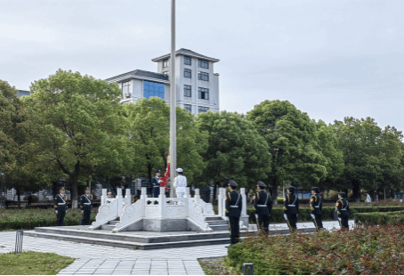 在晨曦中,石晶晶宣布升旗仪式开始,全体师生肃立,国旗护卫队踏着坚定有力的步伐护送国旗进场。国歌声中,国旗冉冉升起,迎风飘扬。全体师生跟唱国歌、行注目礼,表达对祖国的深深敬意。