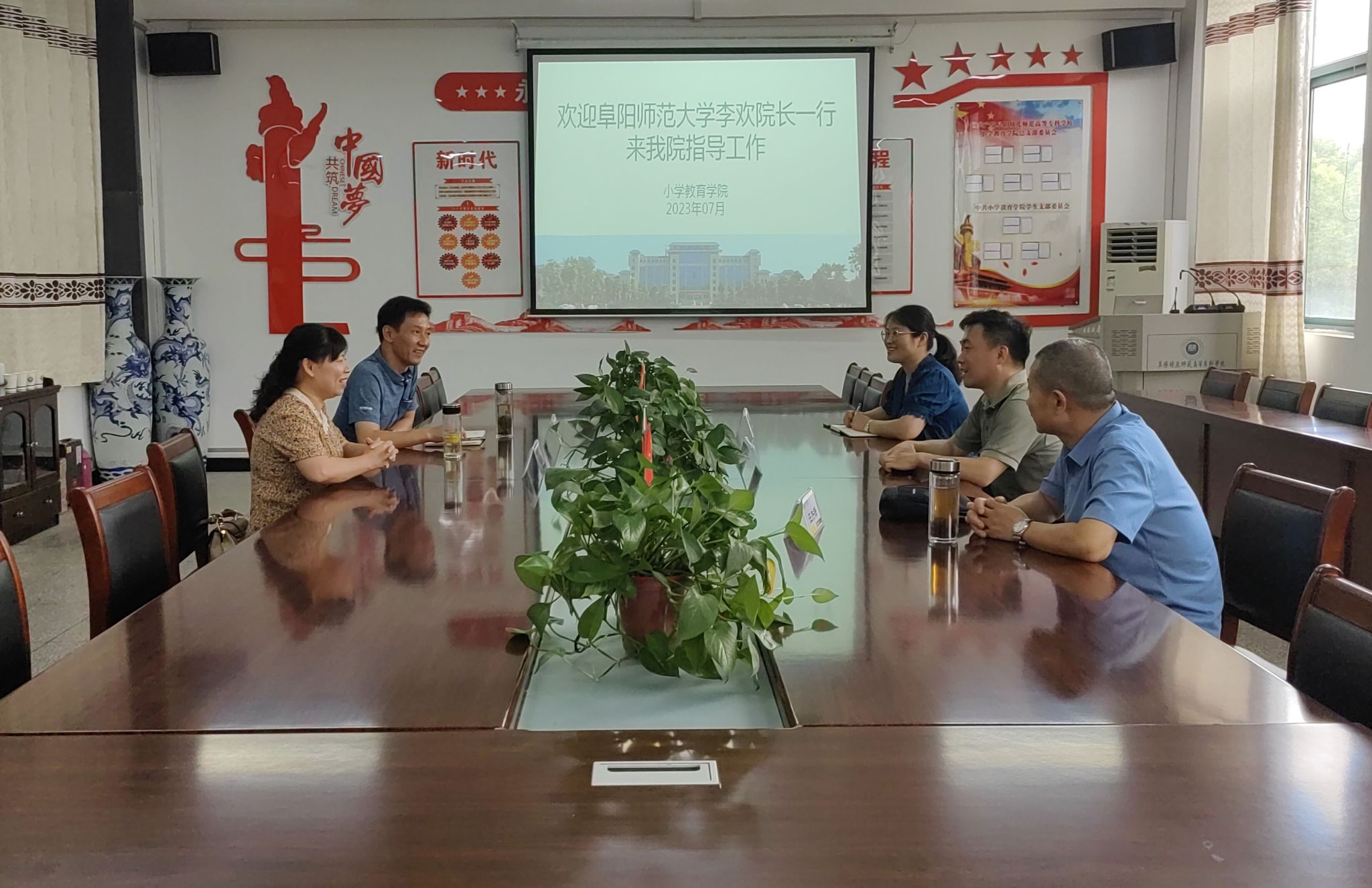 2023年7月17日下午,阜阳师范大学教育学院院长李欢,应邀来我院指导专升本联合培养工作。我院院长郭玉敏、党总支负责人朱启俊及行政人员热情接待了来宾。