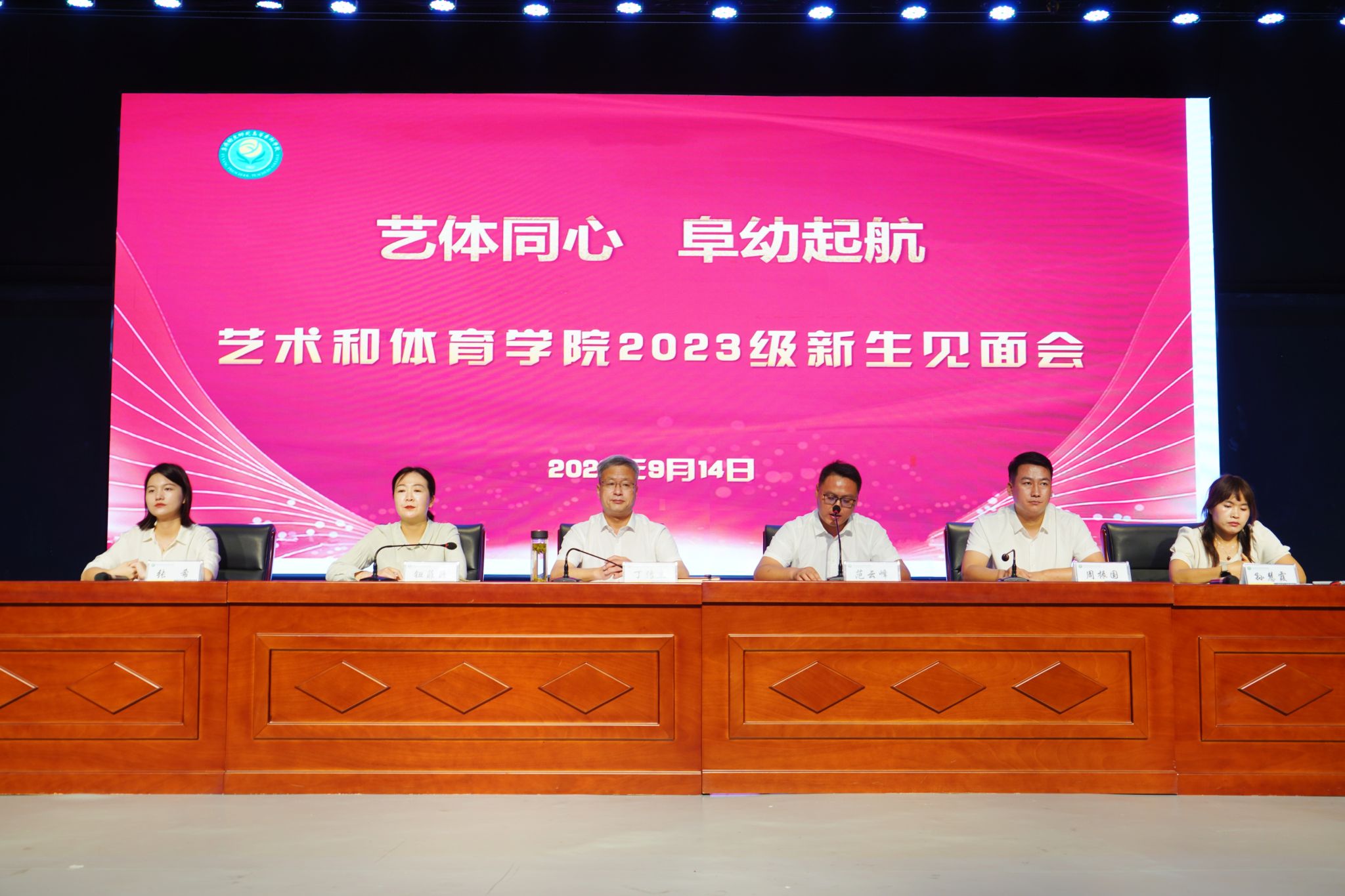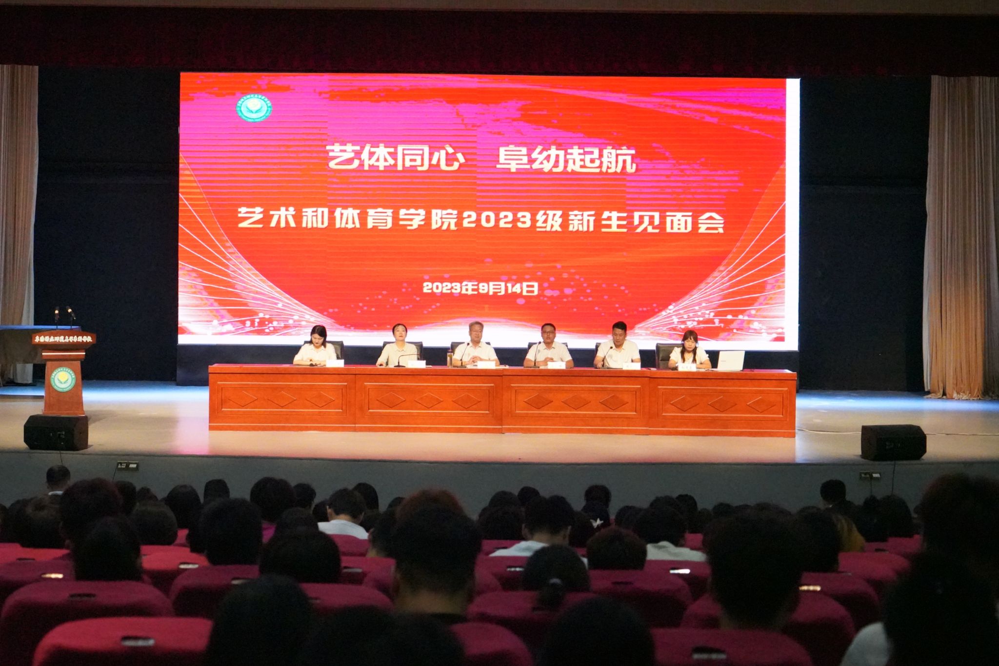 9月14日,艺术和体育学院隆重举行了2023级新生见面会,标志着新一届学生的正式加入。这次见面会以热烈的氛围和丰富的内容为新生们带来了一次难忘的体验。见面会在德馨楼演艺大厅召开。院长丁传杰、党总支负责人范云峰、副院长钮菲菲、行政秘书孙慧霞、教学秘书张希、各教研室负责人、新生辅导员以及2023级新生参加,见面会由院团总支书记周振国主持。