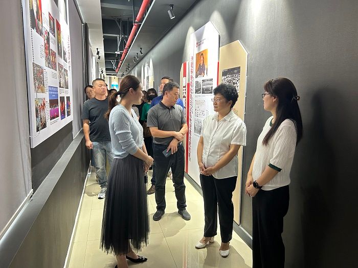 吴静一行参观了百年党史文化长廊、影音学习角、印说党史、思源读书角、红色影院、中国共产党人精神谱系及智慧教室等,并穿戴VR设备体验了“王家坝抗洪救援”“红军爬雪山”“飞夺泸定桥”等虚拟仿真思政实训课程。