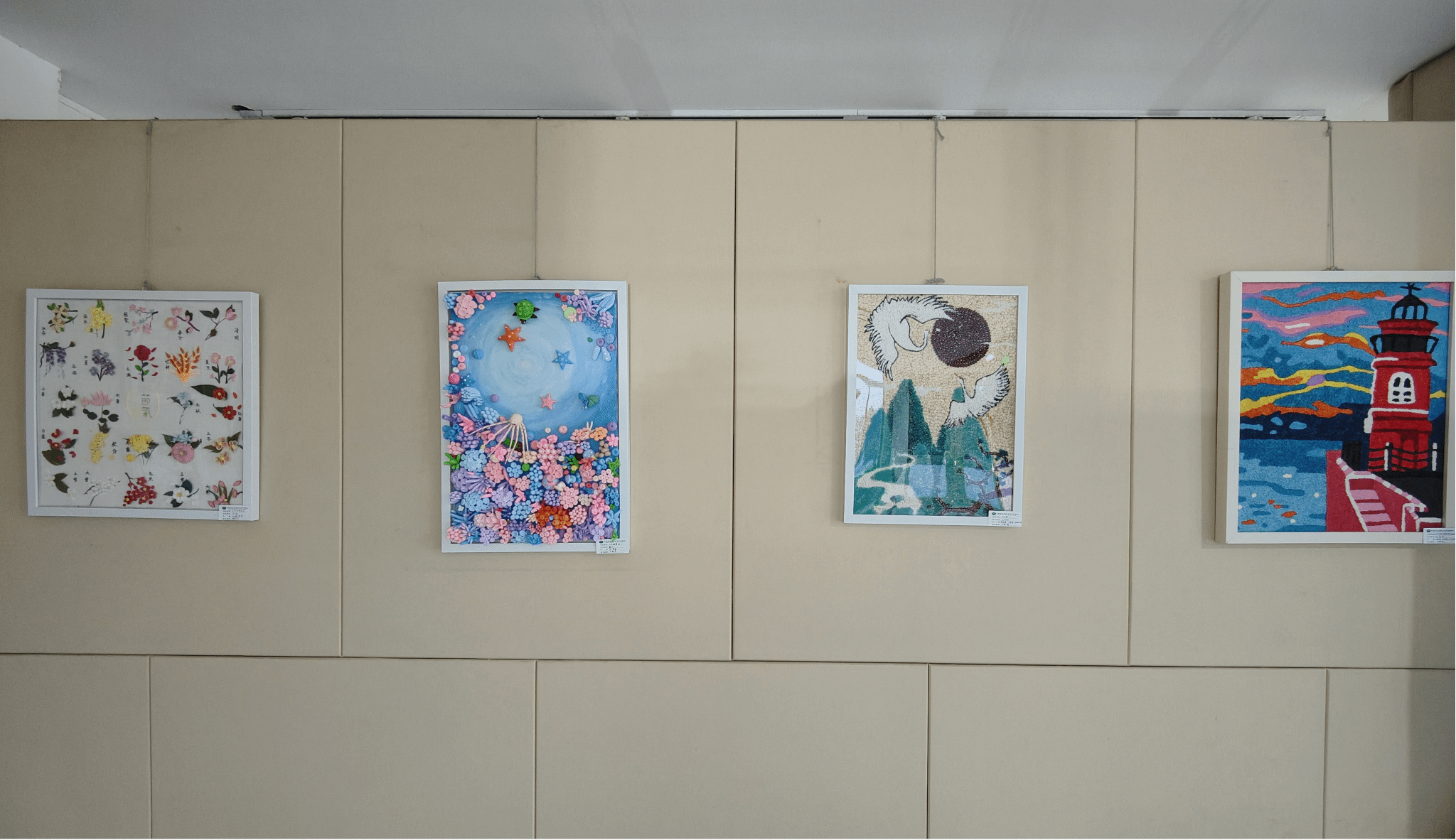 本次作品展分作品征集阶段与作品展出阶段。作品征集从11月份开始,面向学院全体学生,12月初共收到作品300余幅;经过评选,共评出一、二、三等奖60幅,包括纸浆画、五谷拼贴画、纸浮雕、粘土画、衍纸和剪纸等多种类型的手工作品。这些作品均由学生们精心制作,每一件都凝聚着他们的智慧与心血。