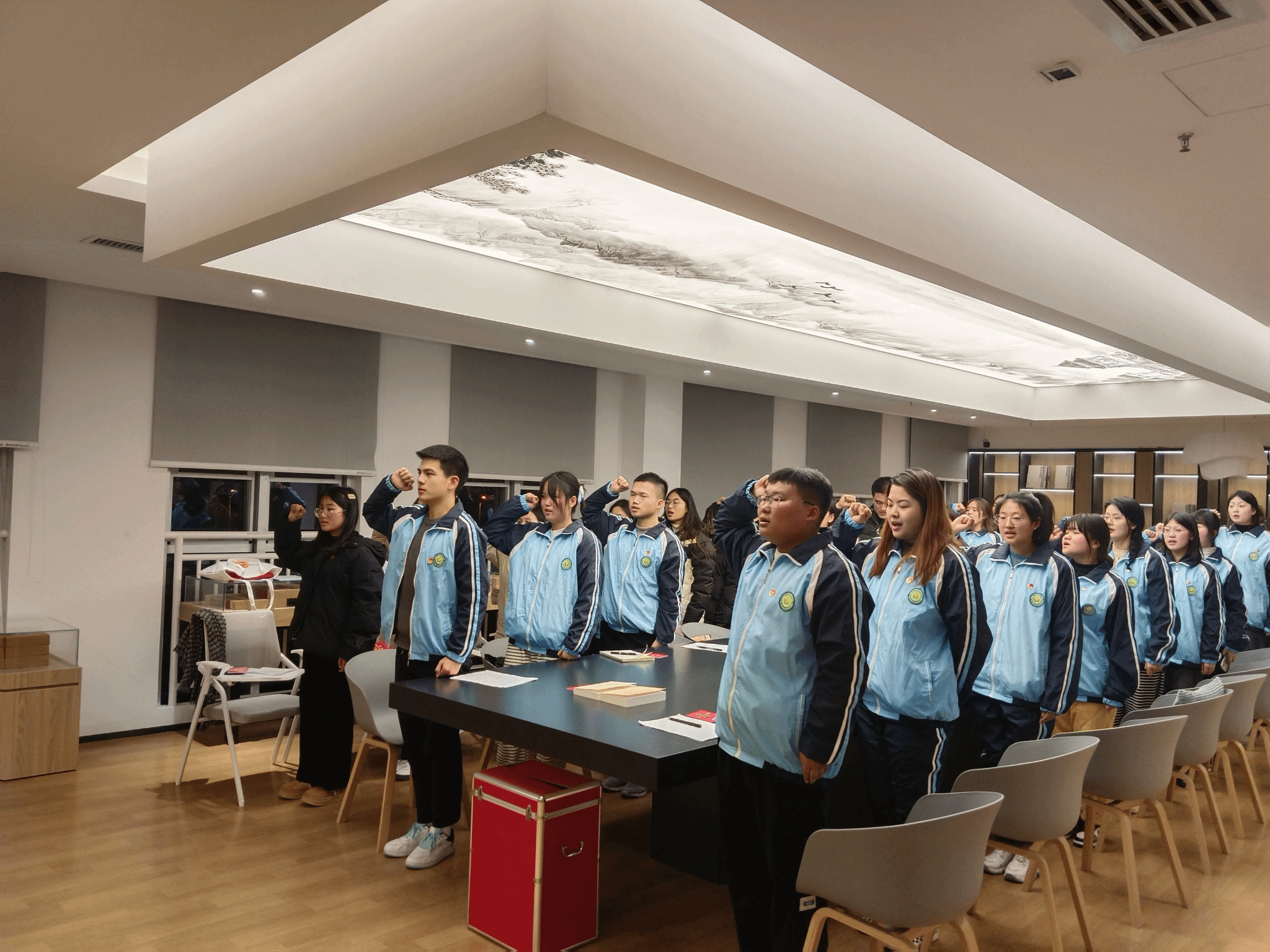 会议首先通报了团支部团员和青年主要教育工作开展情况,团支部书记李路运同学代表团支部委员会作对照检查,团支部委员和各团小组组长进行对照检查发言,严肃开展批评与自我批评。会上,团支部围绕“有信仰、讲政治、重品行、争先锋、守纪律”五个方面对全体团员进行了民主测评,与会师生重温了入团誓词。