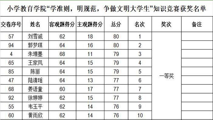 为了全面了解同学们在活动月期间的学习成果,3月21日晚,在文津楼301、302教室精心组织了一场知识竞赛。此次竞赛的试题内容广泛且深入,涵盖了《高等学校学生行为准则》《阜阳幼儿师范高等专科学校学生违纪行为处理办法(修订)》的核心知识点。旨在全面检验同学们对相关规定的理解和掌握情况。经过激烈的角逐,最终刘雪诚等10位同学获一等奖。