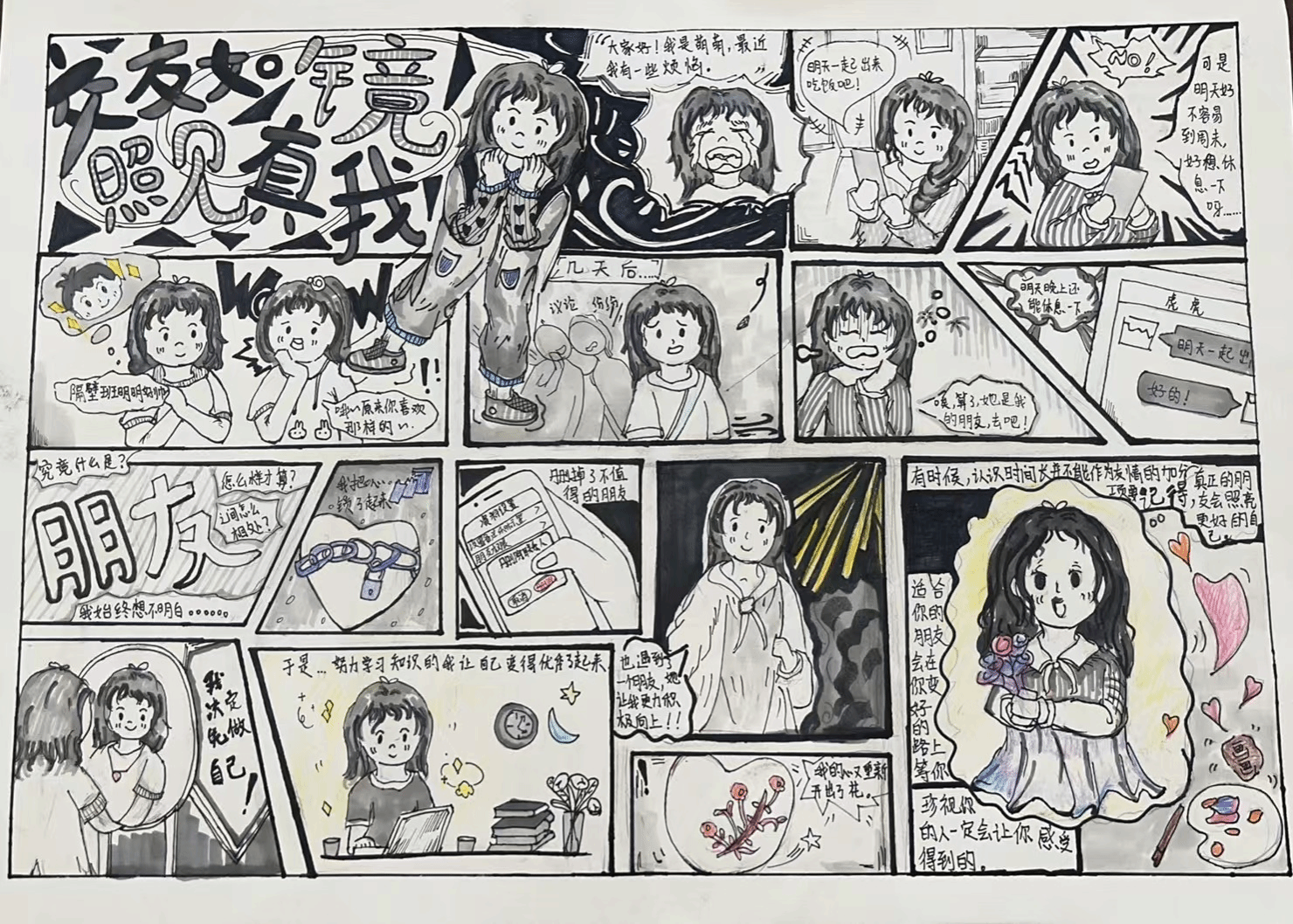 通过心理漫画创作,可促使学生利用漫画的形式,将内心那些或复杂、或隐秘的情绪尽情地抒发出来,进而实现自我认识,清晰地察觉到自身情绪根源以及心理状态;帮助自身调解情绪,让负面情绪得到宣泄,同时强化积极的心理暗示。下一步,学校将继续丰富心理育人内涵,开展丰富多彩、学生欢迎的心理活动。(图文:李嘉琪,初审:周振国,终审:范云峰)