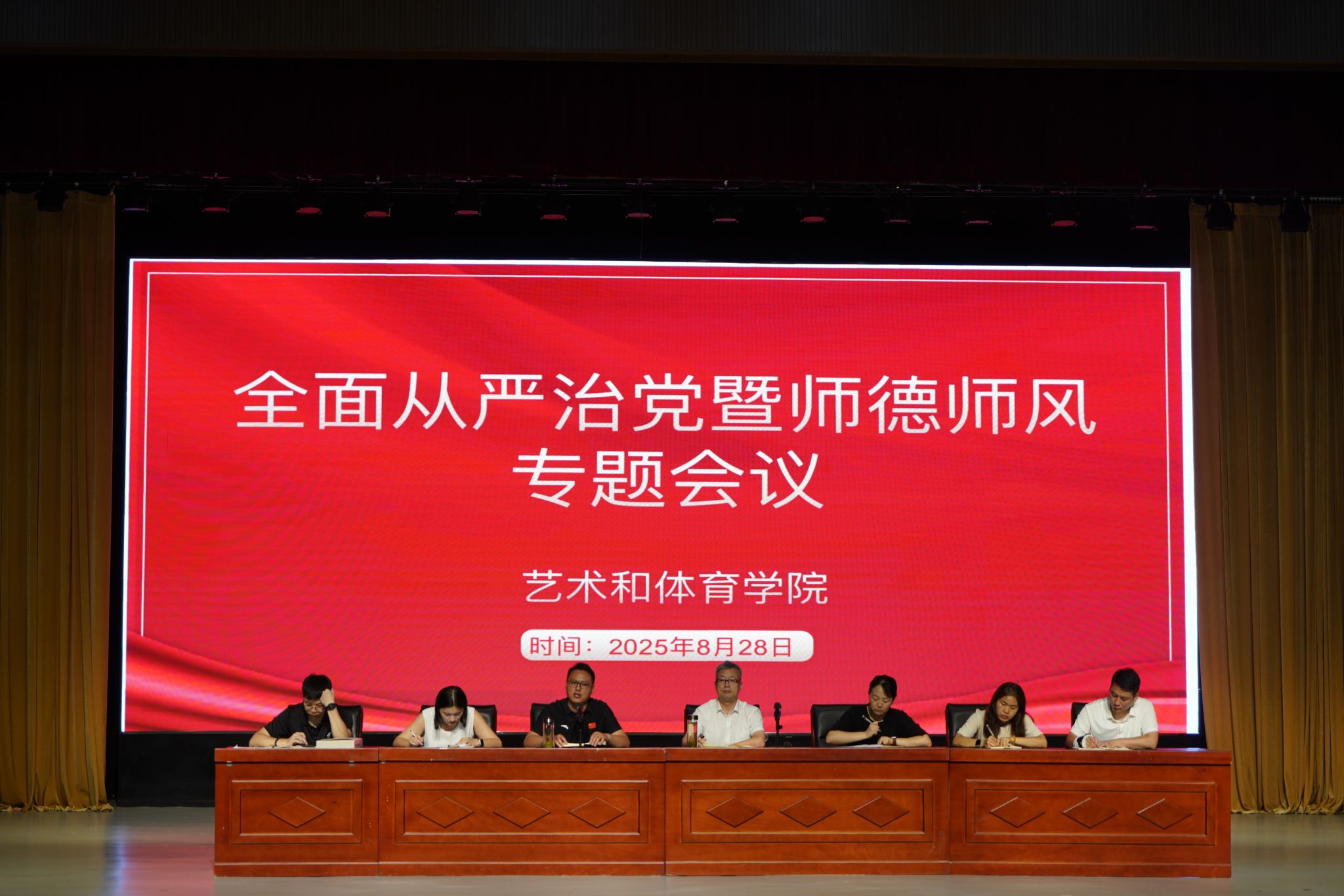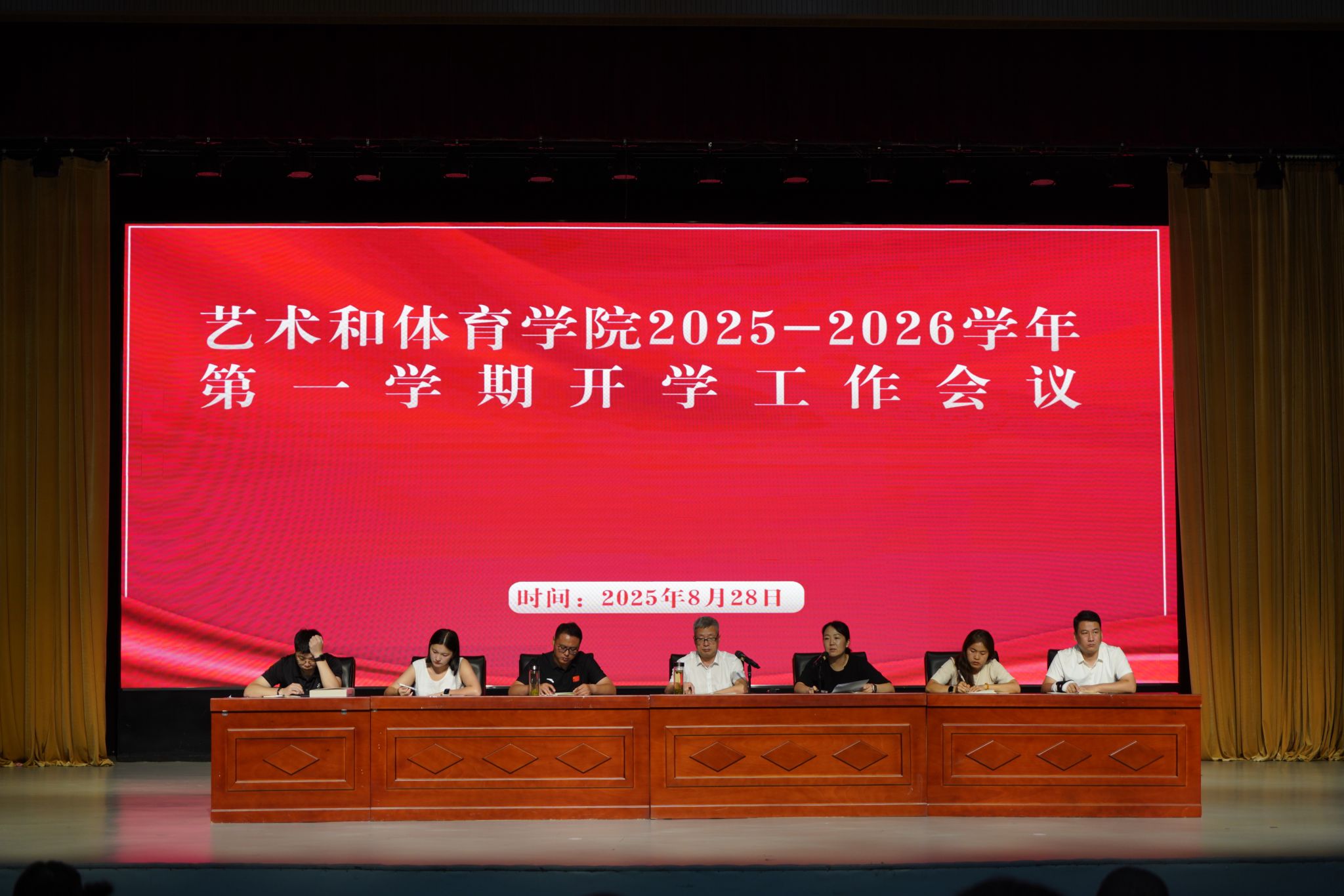 8月28日,艺术和体育学院于德馨楼演艺大厅召开新学期全体教职工大会,锚定发展方向,部署重点工作,为新学期各项事务有序推进凝聚共识。