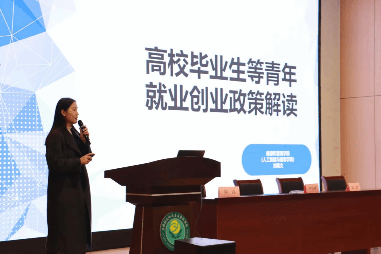 学院就业联络员刘佩文围绕高校毕业生就业创业相关政策和“安徽24365大学生就业服务平台”小程序的使用展开深入解读,毕业生认真聆听、主动记录,有效解决了同学们在就业政策与线上求职方面的困惑。