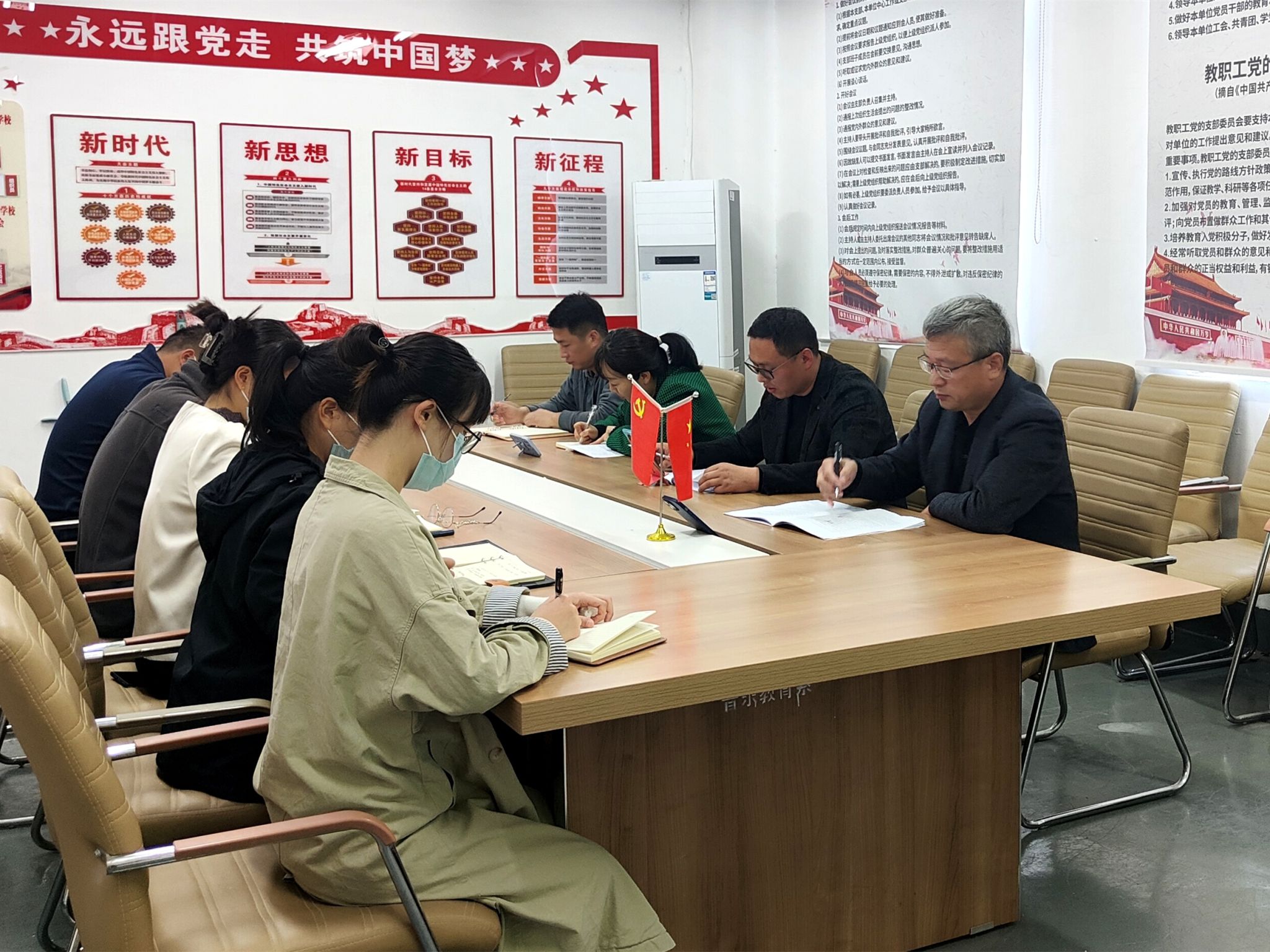 钮菲菲就学习贯彻宣传党的二十大精神工作做具体部署,她指出,作为党员教师要自觉的在思想和行动上与党中央保持高度一致,努力奋斗,跟上时代进步的步伐,不断提高自身的业务能力,不忘初心,牢记责任,勇于担当。