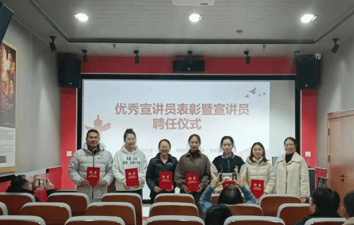 在优秀宣讲员表彰暨宣讲员聘任仪式上,何丽娜院长为优秀宣讲员颁发荣誉证书并为宣讲团成员颁发聘书。