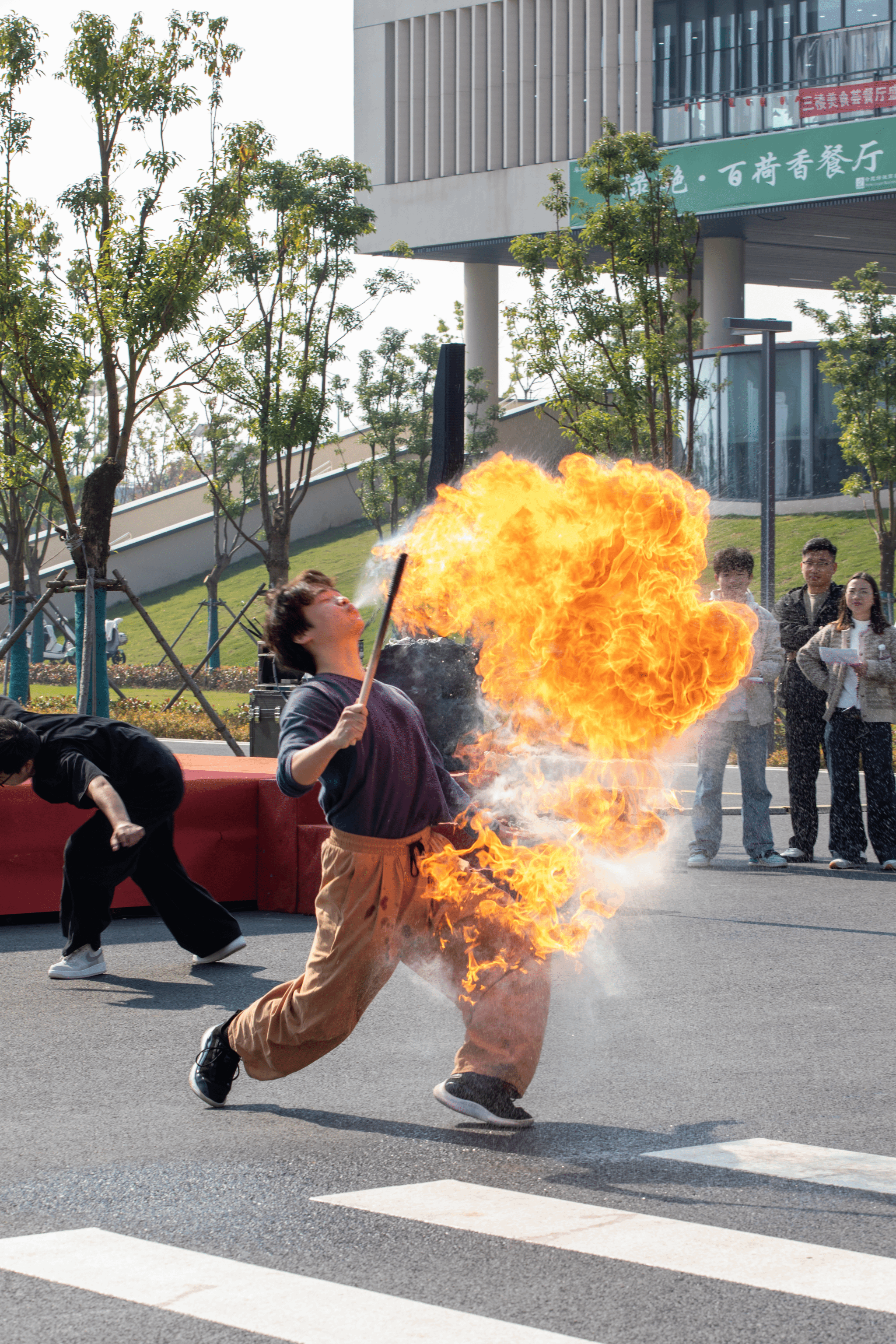 快闪活动,精彩纷呈。社团展位让同学们流连忘返,而社团快闪活动更是带来了一场艺术盛宴:国旗护卫队以挺拔姿态亮相,分列式整齐划一、步履铿锵,展现出纪律严明、爱国向上的精神风貌,吸引了众多心怀责任与荣耀的学子;热血迸发,激情澎湃,街舞社在音乐的律动中展现青春与活力;翩若惊鸿,宛若游龙,中国舞随音乐翩跹而舞,舞态生风,赢得现场学生阵阵掌声;动作婀娜,热情奔放,拉丁舞者身姿优雅挺拔,每一个动作都流露出力量与美感;武术社太极展示刚柔并济,舞刀弄枪行云流水……多样的快闪节目将“百团大战”的气氛推向高潮,展现了我校学子积极向上的青春风貌与全面发展的优秀品格。