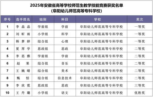 此次佳绩的取得,是学校长期坚持立德树人根本任务、深化师范教育改革的重要成果,也是学校“以赛促教、以赛促学、以赛促练”培养模式的生动实践。未来,我校将持续深化师范教育综合改革,优化人才培养方案,强化教学技能训练,不断提升办学质量与水平,为推动教育事业高质量发展作出新的贡献!(通讯员:刘腾腾)