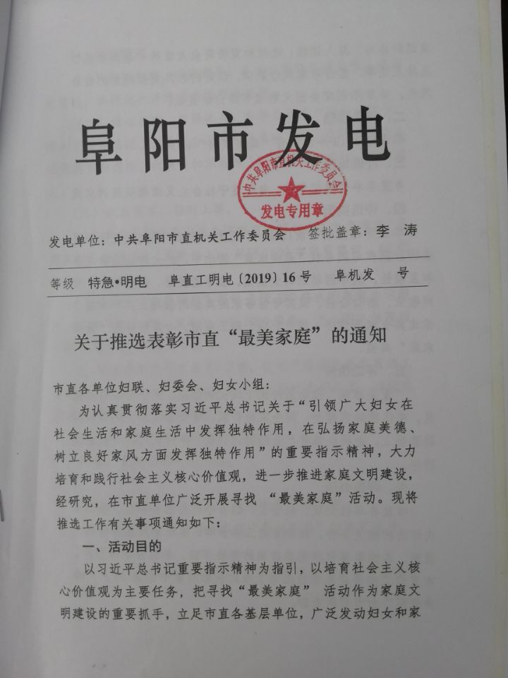 附:关于推选表彰市直“最美家庭”的通知