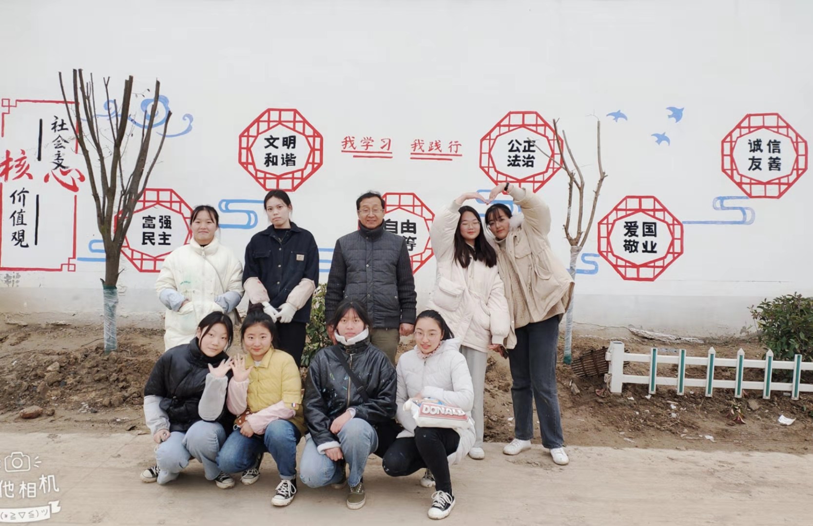 11月27日,由我校关工委“五老”成员葛勇老师带队,汇同艺术和体育学院八名学生志愿者一行到牛楼村牛小楼自然村,围绕宣传乡村振兴战略、弘扬优秀传统文化,树立社会主义核心价值观等主题,精心选址,现场设计并绘制墙绘壁画。