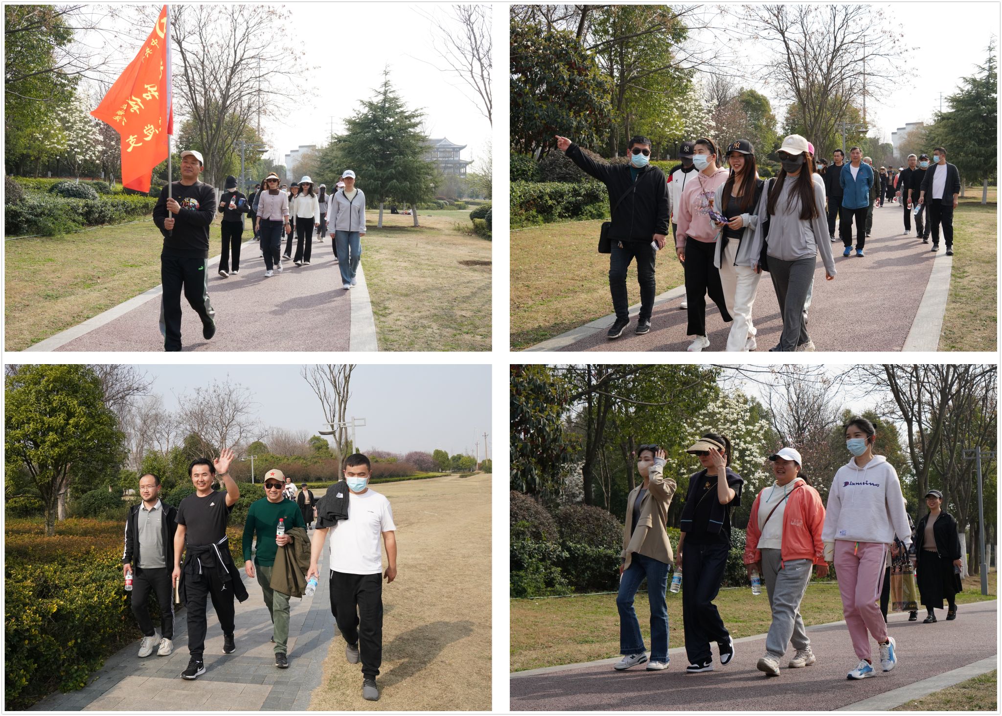 活动中,大家在七渔河阜阳市园林展馆集合,集体合影后大家围绕七渔河公园一周进行5公里徒步走。花在丛中开,人在花中笑,一路上旗迎风招展,大家欢声笑语,谈笑风生沿途景色如画,尽显大美阜阳美景同事们结伴而行,感受着鸟语花香,春风拂面即释放了心灵,又收获了健康。为了保障活动的安全、顺利举行,学院为大家准备了医药包、矿泉水节日慰问品。