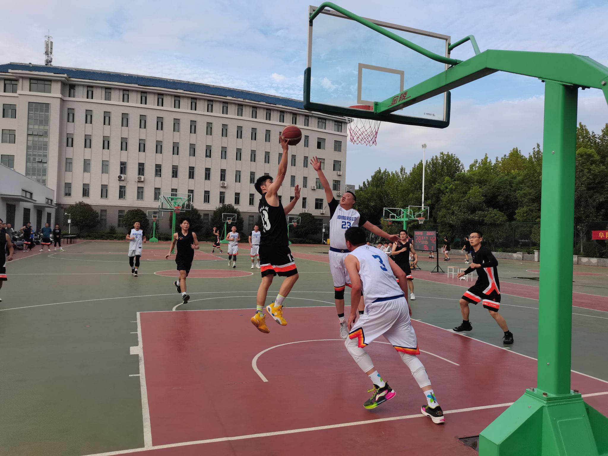 9月21日下午,由学校和中国移动阜阳分公司举办的庆中秋、国庆职工篮球友谊赛在学校篮球场举行。