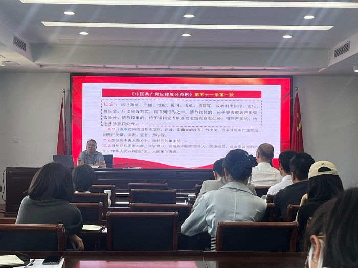 课上,郑长胜围绕政治纪律、组织纪律和生活纪律三个部分,对《中国共产党纪律处分条例》进行了详细地解读,整场党课内涵丰富、案例生动、分析透彻,使全体党员充分认识到修订《条例》的重要意义,对《条例》有了更深层次的理解和感悟,进一步强化了纪律意识,营造了学纪、知纪、明纪、守纪的浓厚氛围。