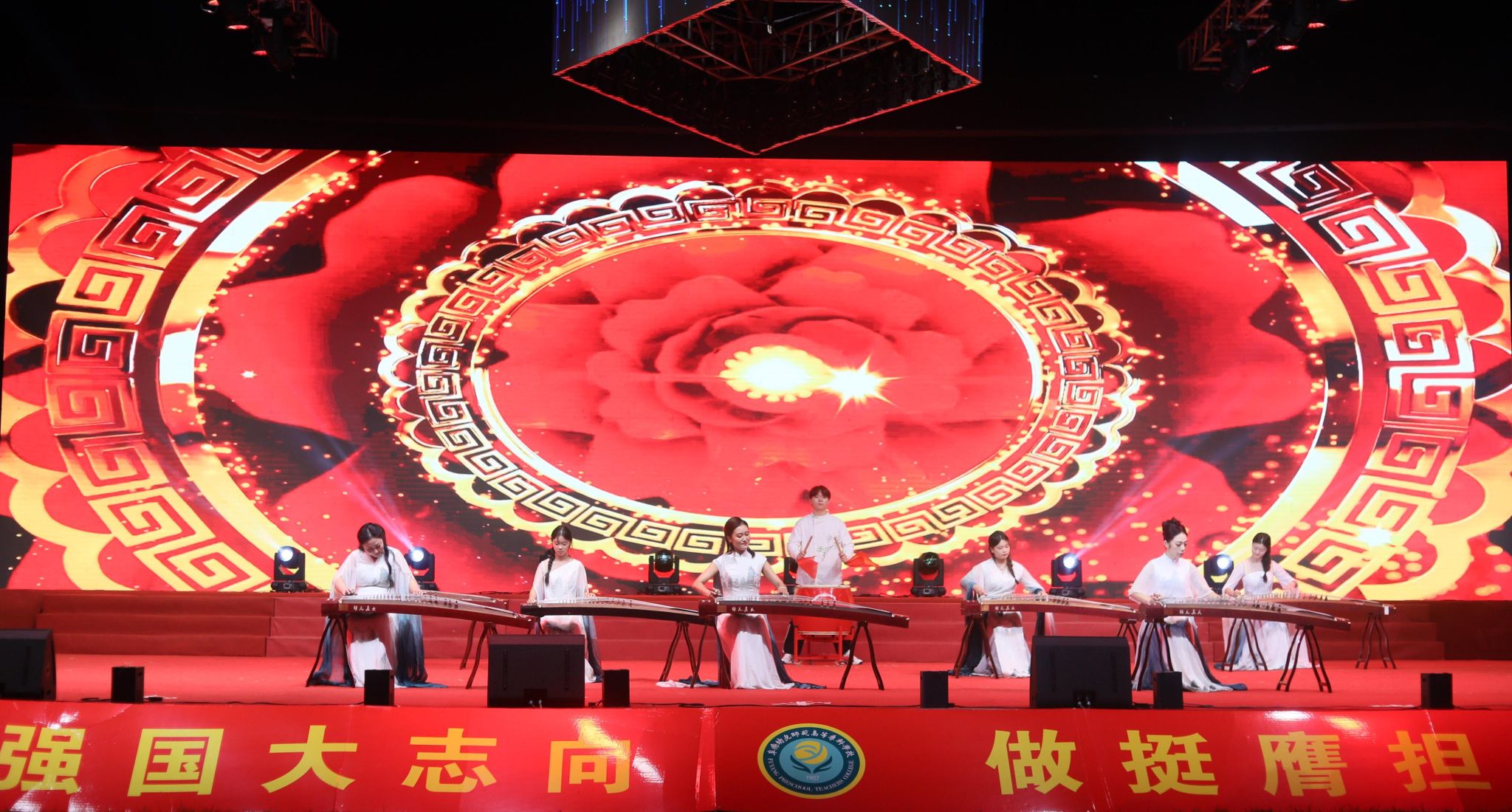 器乐《盛世国乐》、歌伴舞《看山看水看中国》、朗诵《你的模样》、艺术舞蹈《爱人送我向日葵》《初恋女》《花又落》等节目,巧妙融合古典韵味与现代潮流,表演者将激情与优雅展现得淋漓尽致,音符跃动、余音绕梁。体育舞蹈《薪火相传》《武魂》等节目刚劲有力、气贯长虹,既展现了幼专青年的青春活力,又将中华武术的博大精深、气吞山河的青春之势在舞台收放自如,令人赏心悦目。