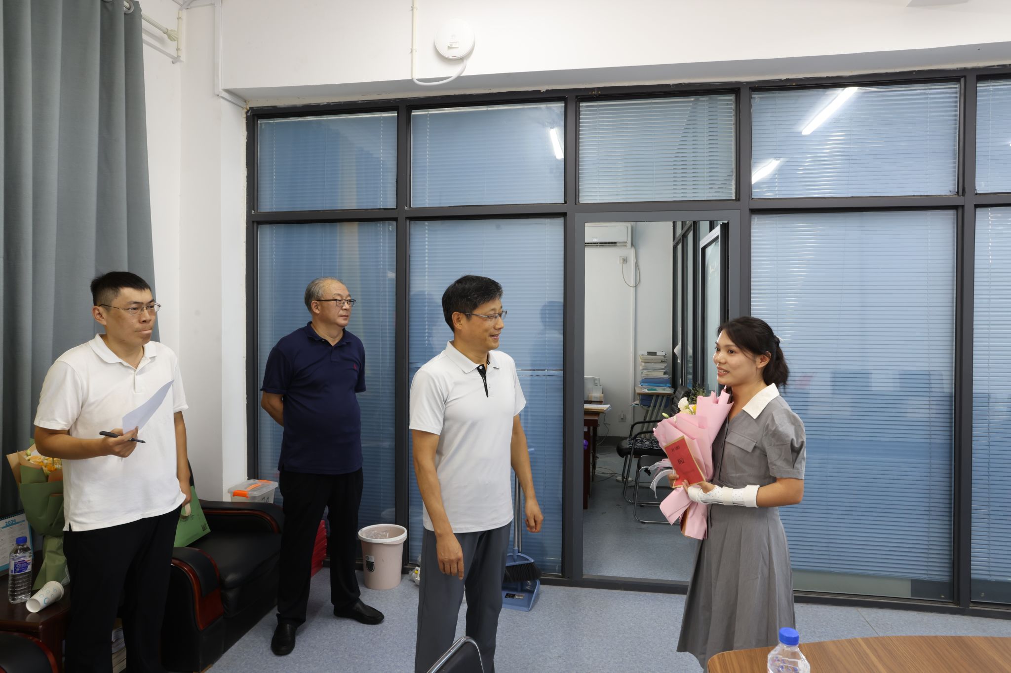 在学前教育学院,校领导为青年教师刘腾腾送上慰问品,并指出青年教师是学校发展的生力军,学校将全力支持青年教师的成长与发展,为他们搭建平台。希望青年教师继续发扬勇于探索、敢于创新的精神,力争产出更多的教科研成果。